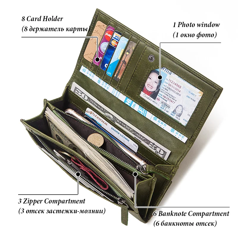 Кошелек женский кожаный с отделением для монет и карт, 2020