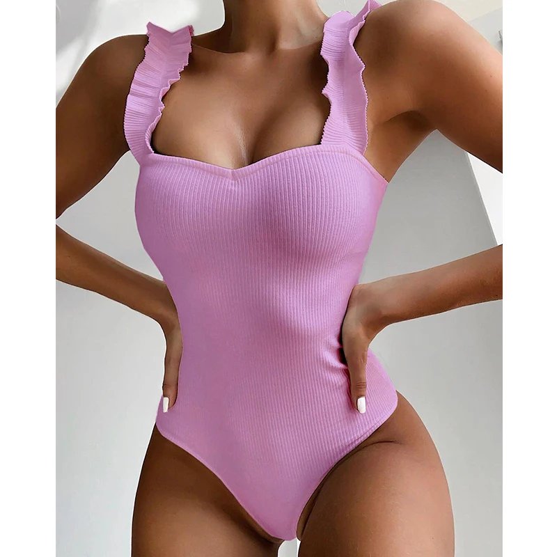 2022 Новый сексуальный цельный купальник женский купальник с рюшами и деревянными ушками пуш-ап Монокини купальные костюмы Летняя Пляжная одежда купальный костюм