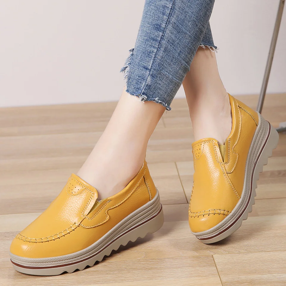 Женские мокасины из натуральной кожи EOFK, демисезонные лоферы на плоской подошве, без застежек, с круглым носком, на платформе, ручной работы