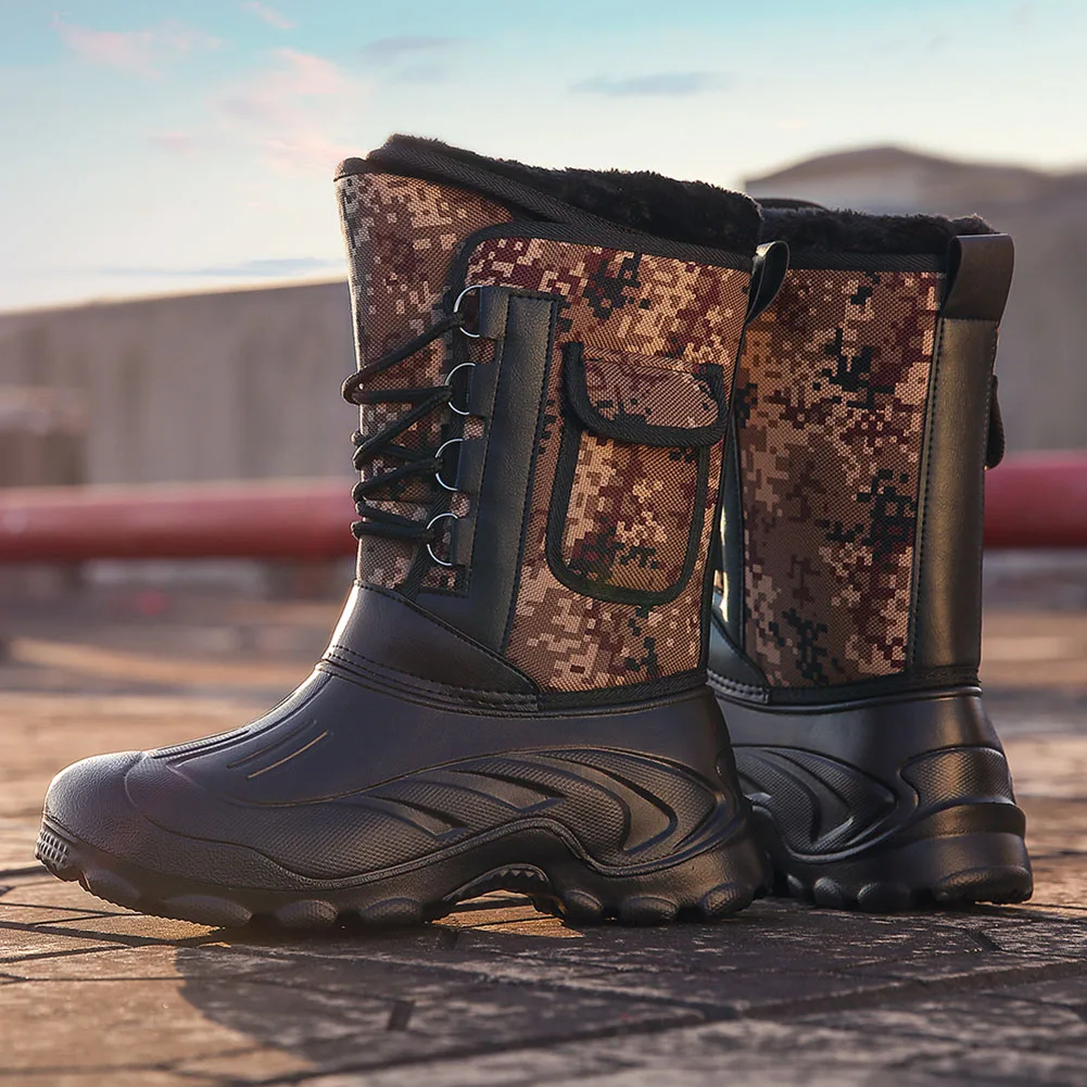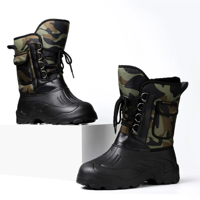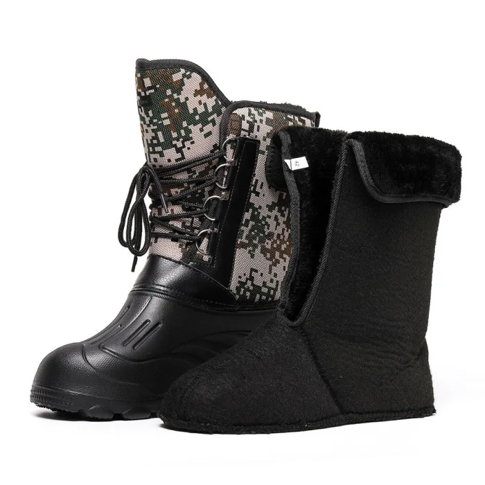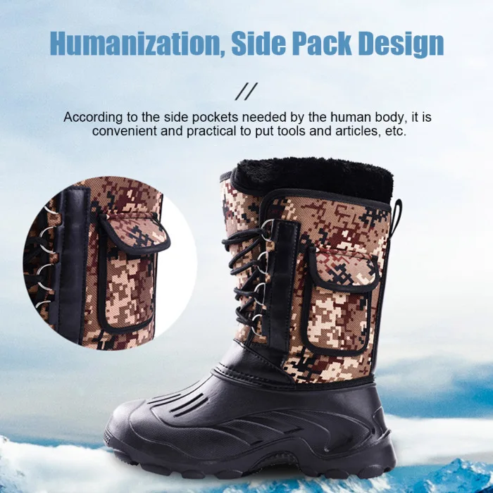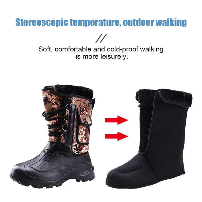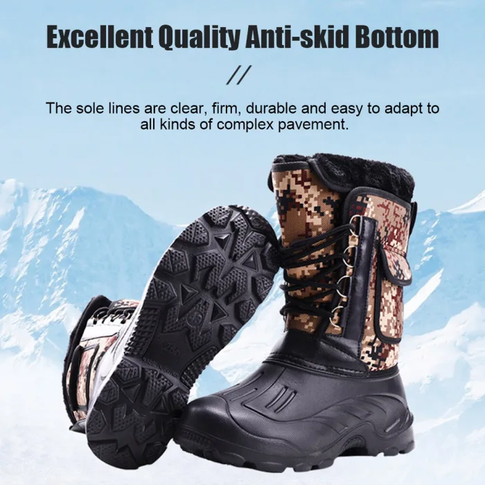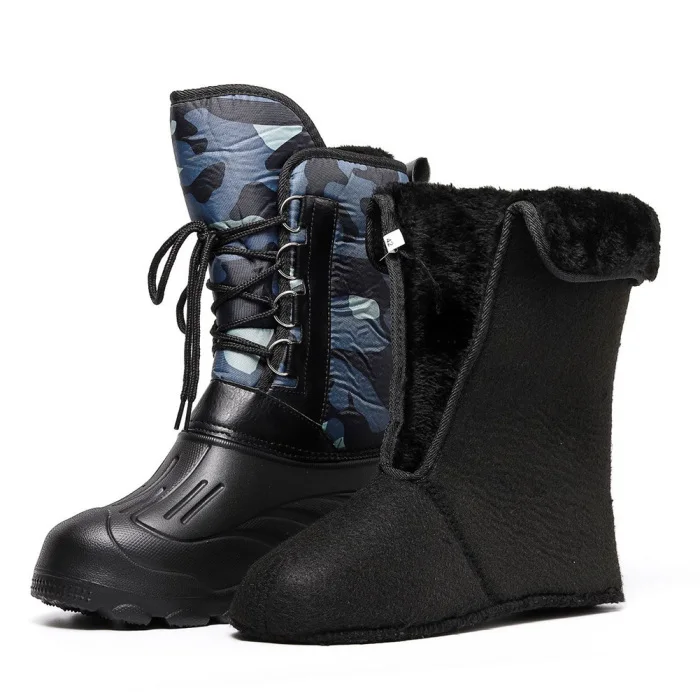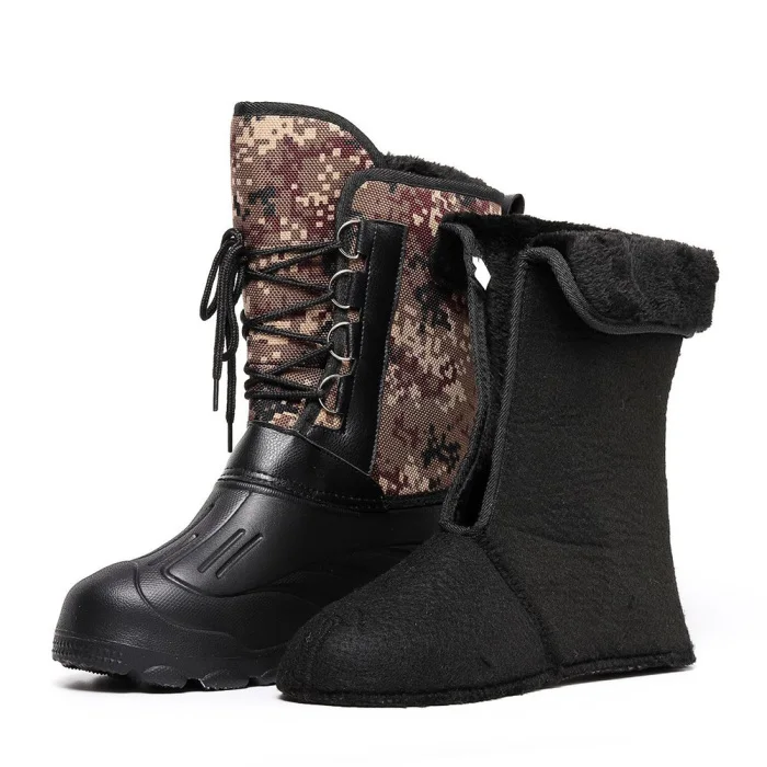 Из материалов самого высокого качества:Чтобы выдерживать постоянное использование на открытом воздухе в холодную погоду, наши ботинки изготовлены из ткани Оксфорд 1800D, войлока, губки, плюша и EVA подошвы.