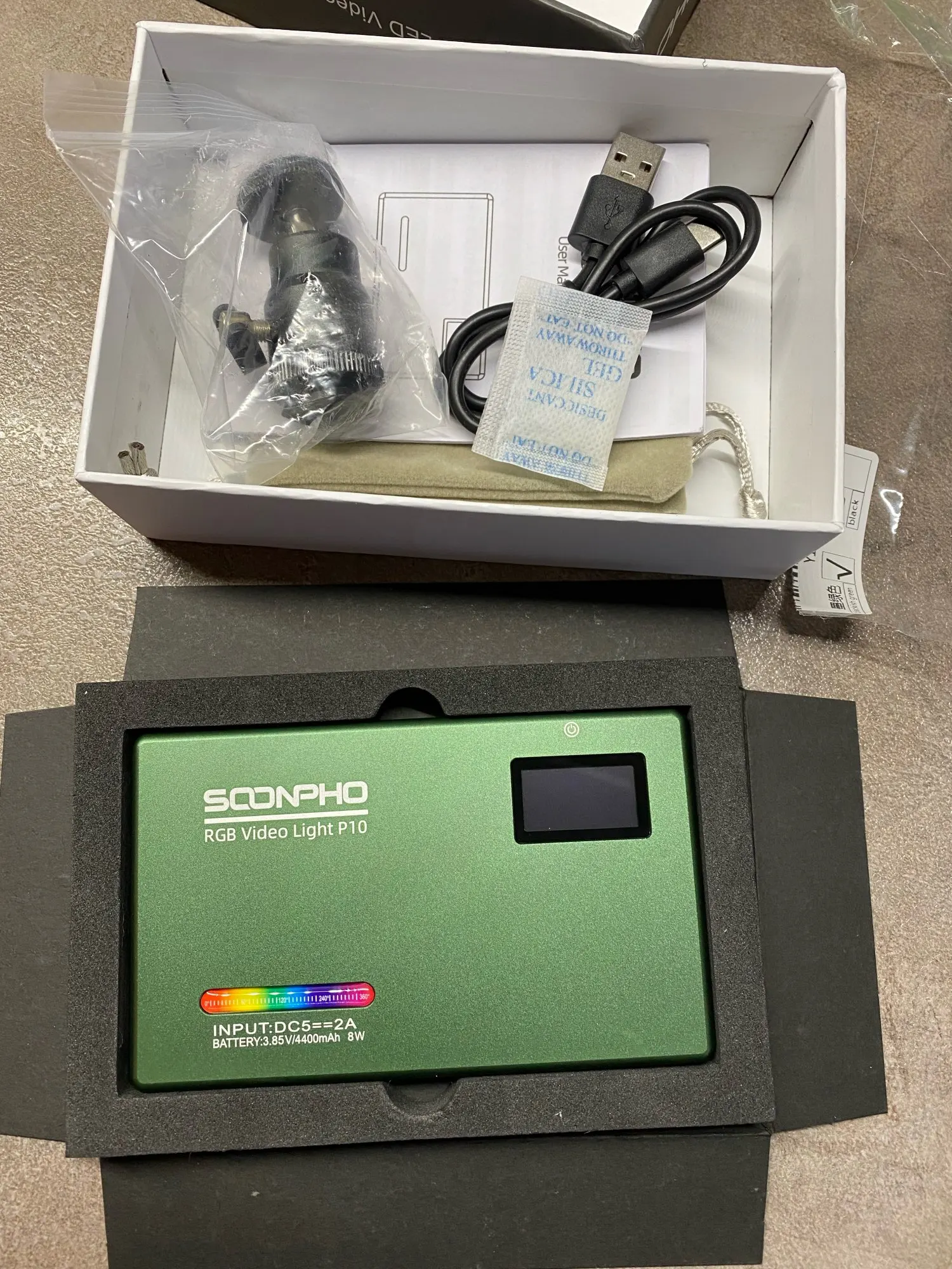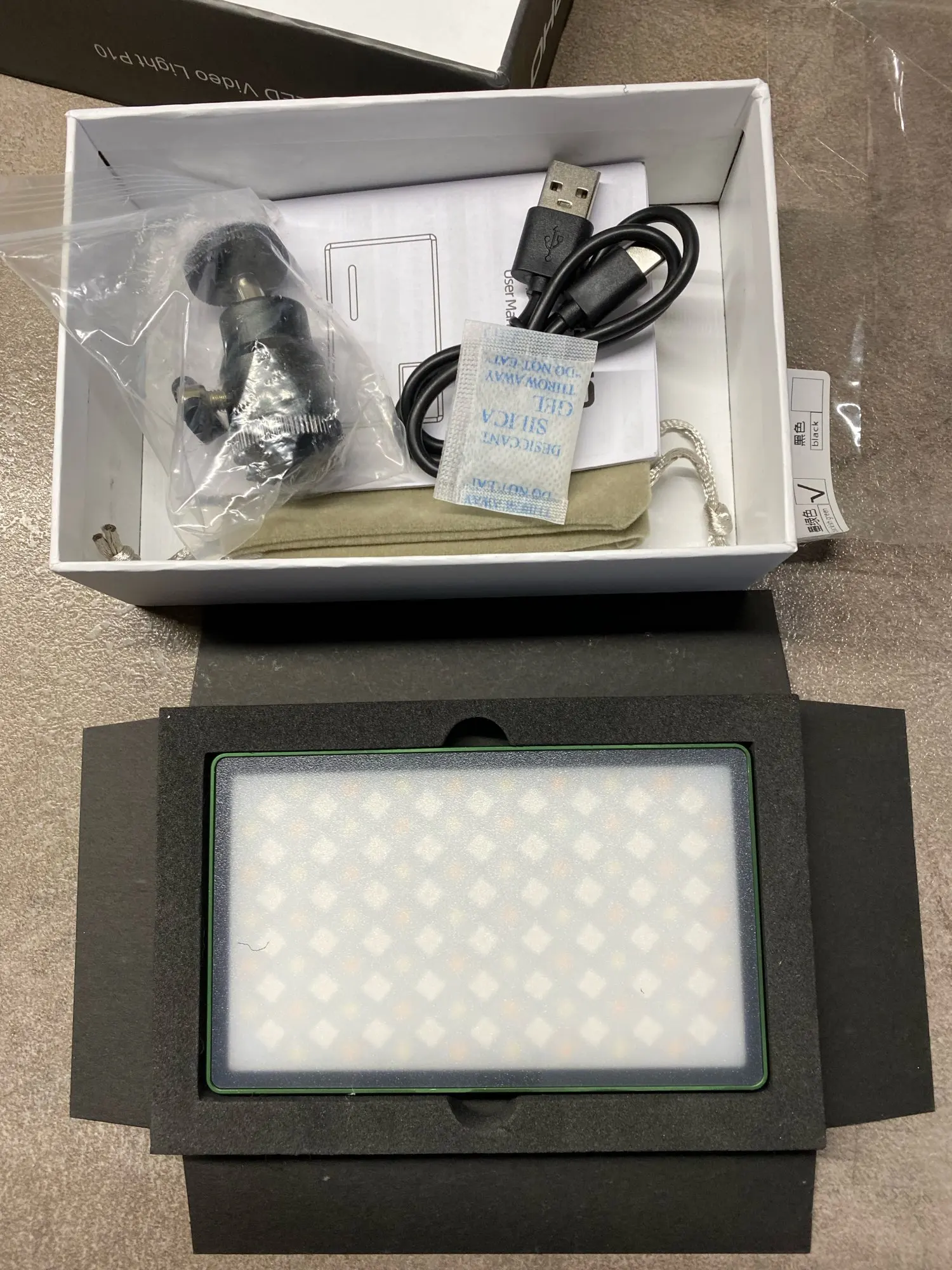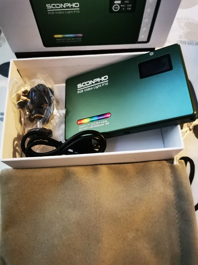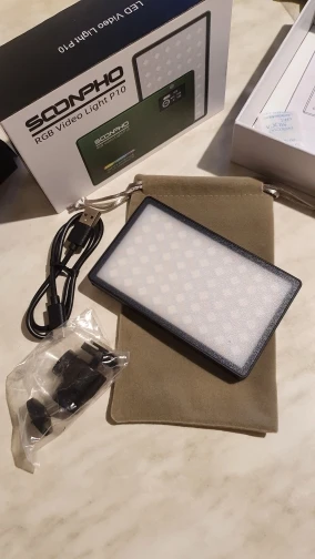 Потрясающий продукт отличного качества. Прибыл в прочную коробку. Включая зарядное устройство, крепление камеры, инструкции на английском языке и сумку для освещения. Свет имеет несколько режимов. Очень мощный. Контроллер для подсветки и изменения цвета. Еще не пробовал с камерой. Быстрая доставка. Рекомендуем продавцу и товар. Очень доволен.