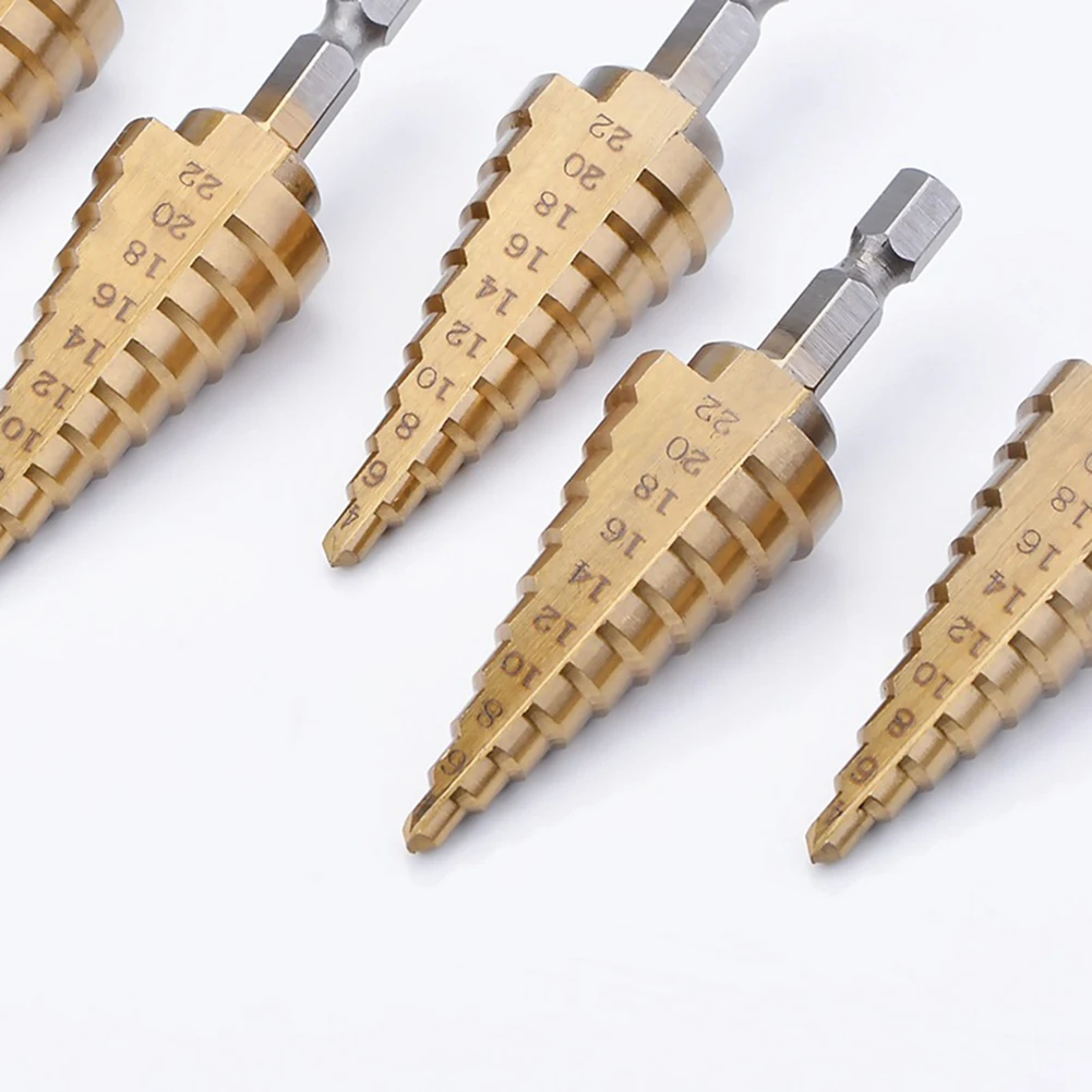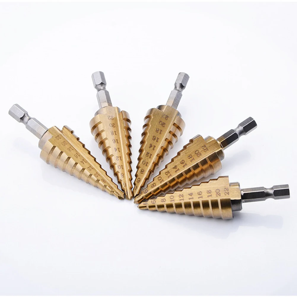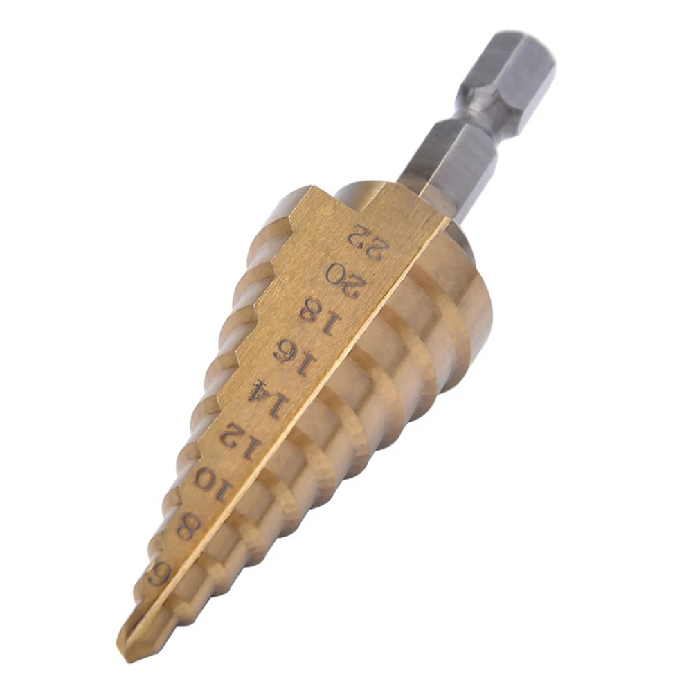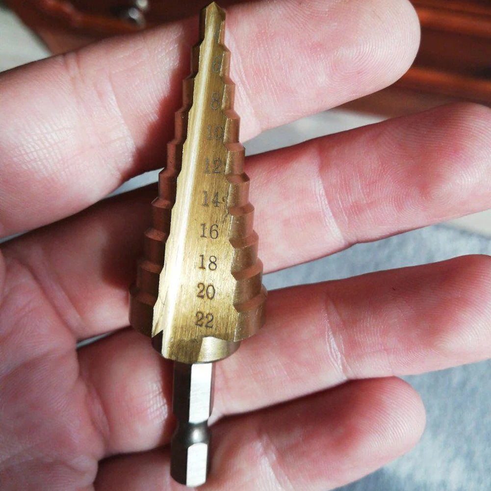 Ступенчатое Коническое сверло из быстрорежущей стали с шестигранным титановым покрытием, 4-22 мм