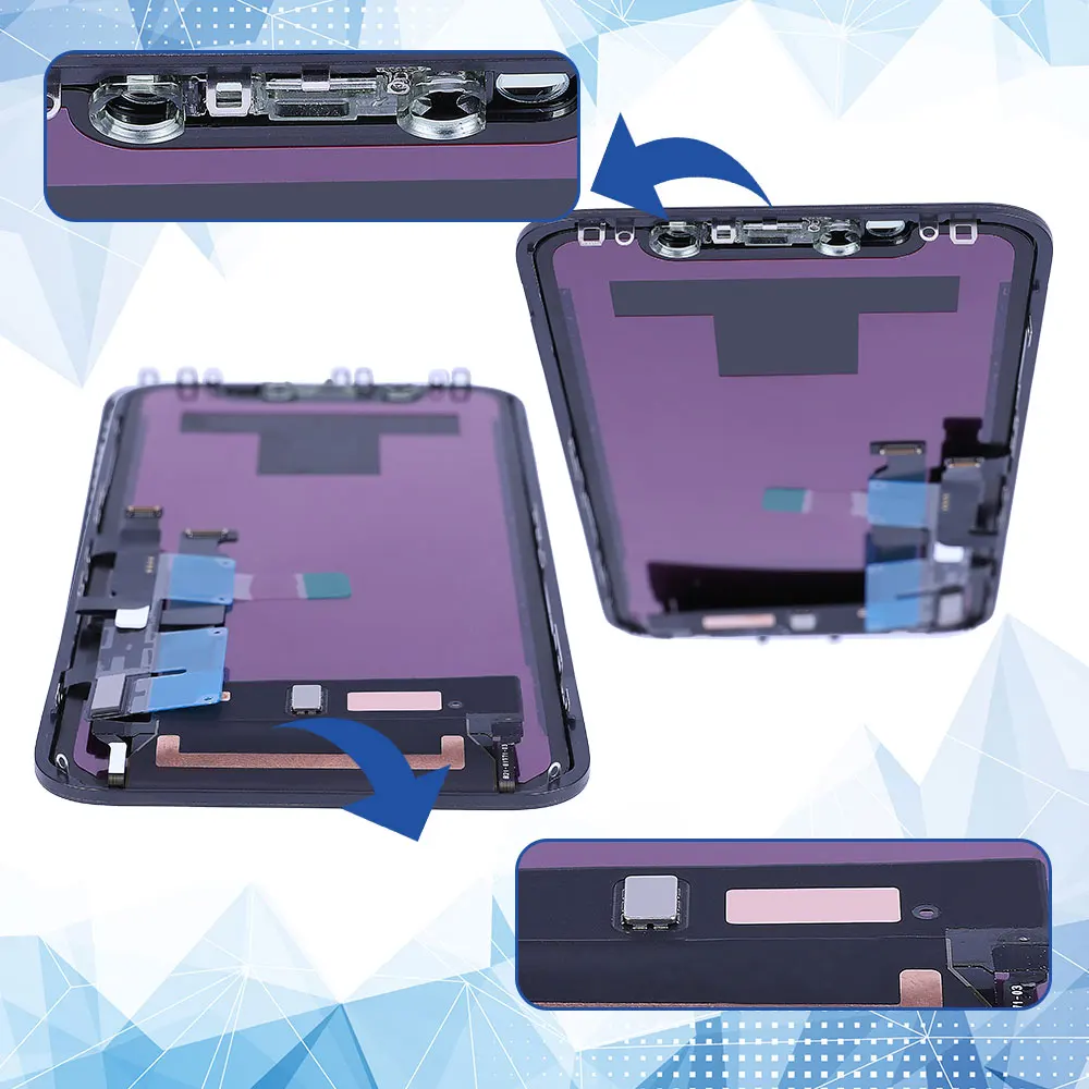 1. Детали: внешнее стекло + ЖК-экран + сенсорная панель дигитайзера + Переднее кольцо для камеры + Датчик-светильник + Пыленепроницаемая сетка для ушей, предварительно собранная.2. Подходит для iPhone X/XR/XS MAX.3. Контроль качества: Каждый экран был протестирован перед отправкой и работает на 100%.4. Посылка: поставляется с антистатической сумкой + пузырчатой сумкой, безопасной упаковкой.5. Гарантия: мы предлагаем пожизненную гарантию (гарантия аннулируется, если ЖК-дисплей/гибкий кабель/Рама повреждена после установки или во время установки).