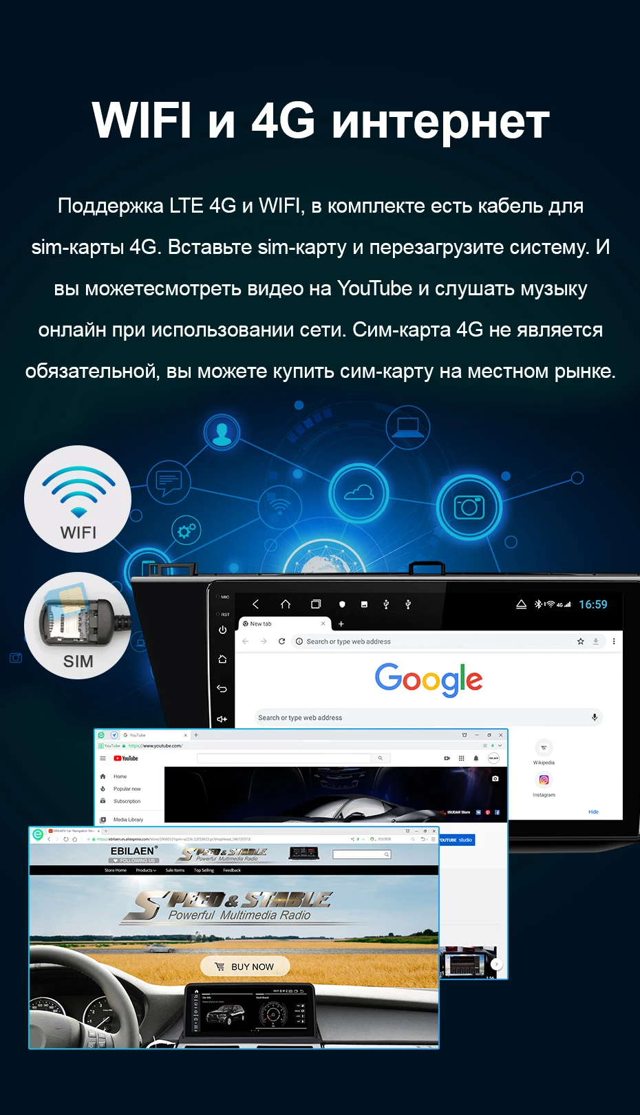 Автомобильный мультимедийный плеер EBILAEN, головное устройство, ви...
