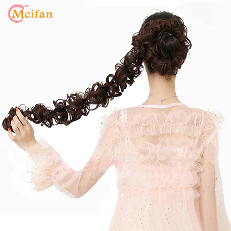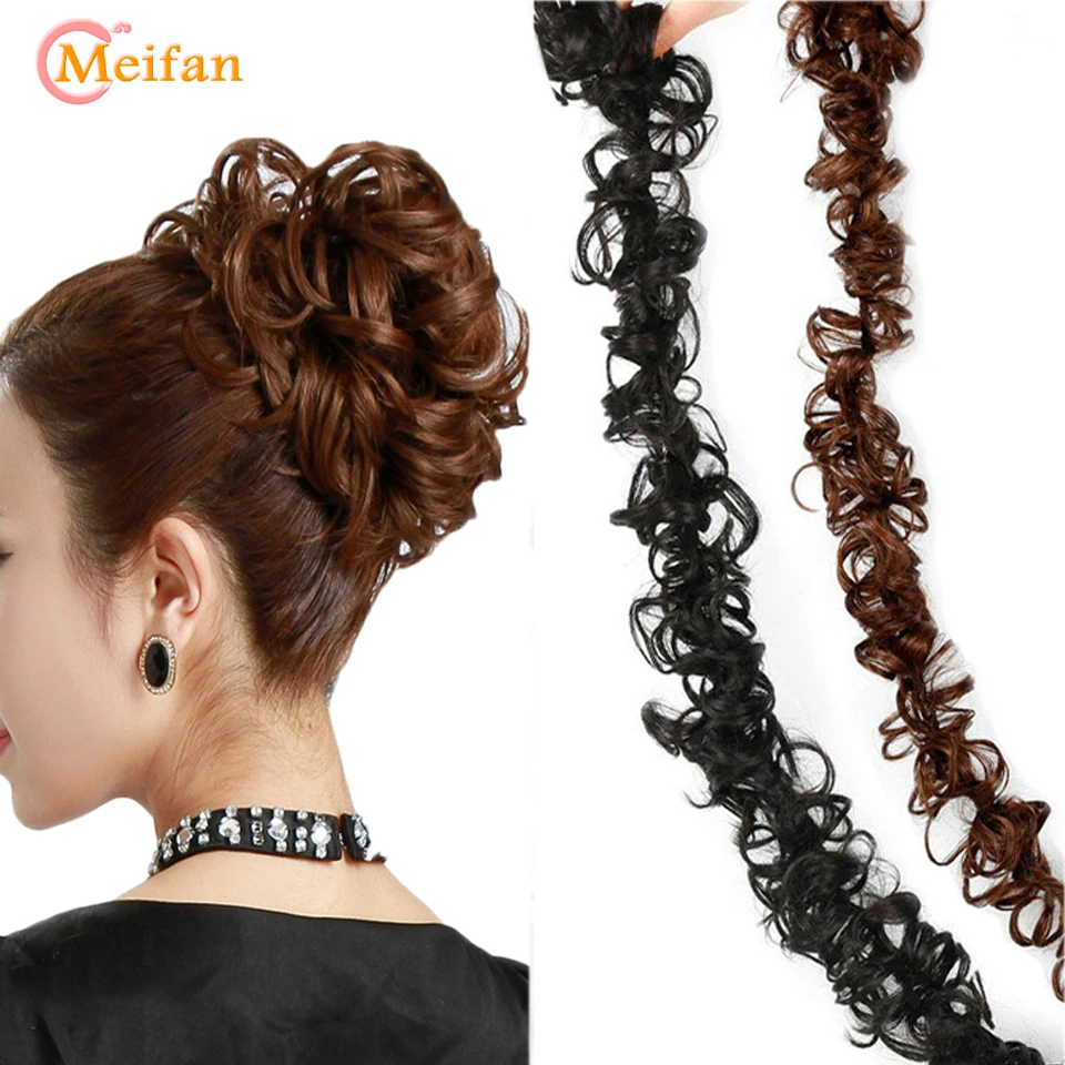 Синтетический короткий вьющийся шиньон MEIFAN, пучок волос, эластичная резинка на шнурке, пучки для волос, парик на заколке, наращивание волос для конского хвоста