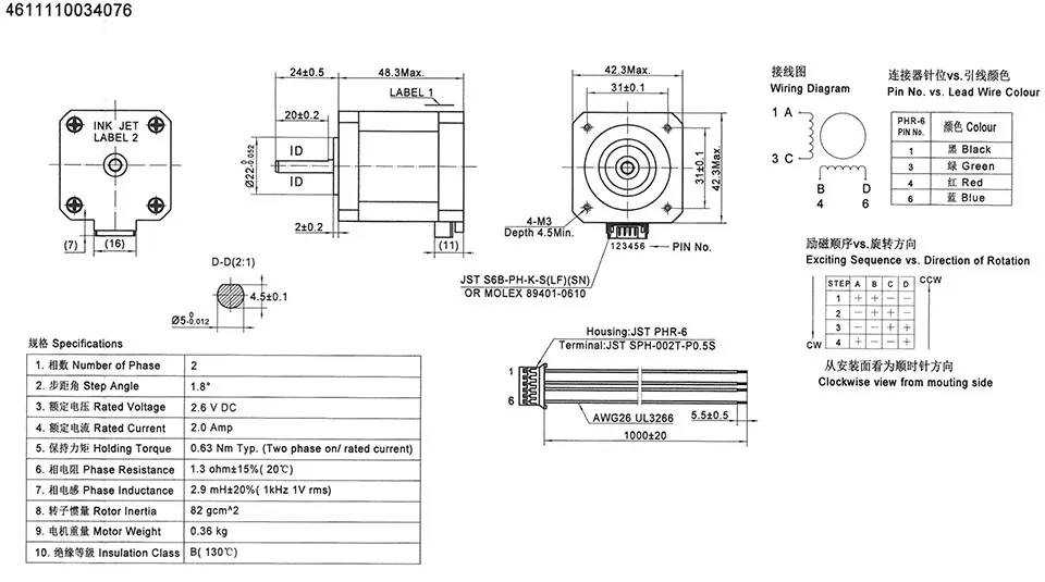 * Moons MS17HA6P4200 NEMA 17 0,9 градусов шаговый двигатель для Pru...