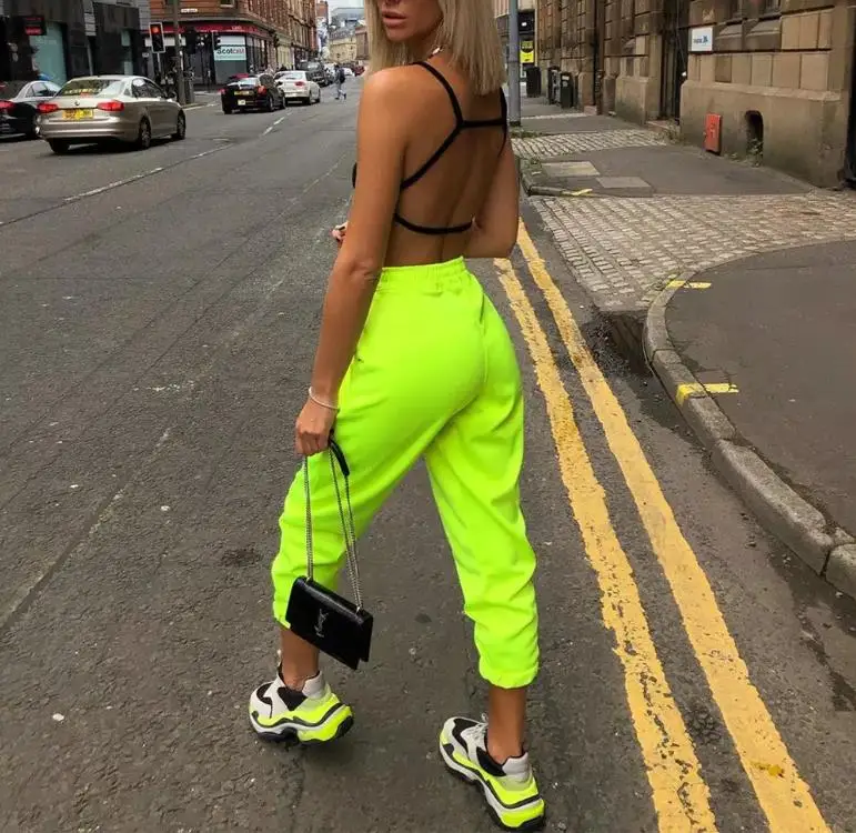 Брюки-шаровары женские осенние, с высокой талией, на шнуровке