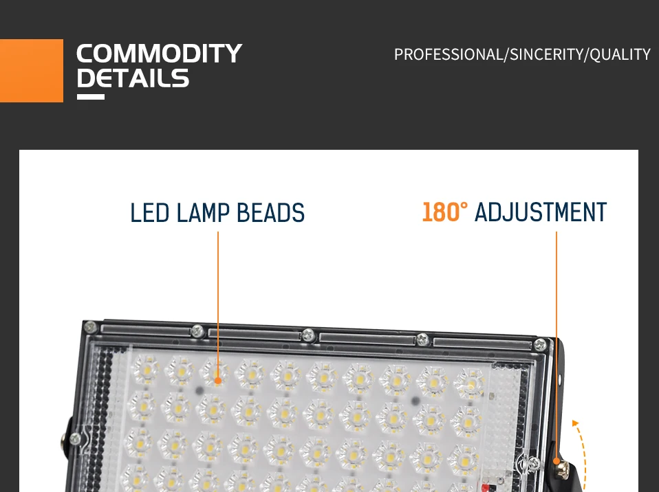 Применение: сад, площадь площади, доска для купюр, завод, тренажерные залы, доки и другие места, где прожекторы имеют широкий угол обзора 120 градусов.