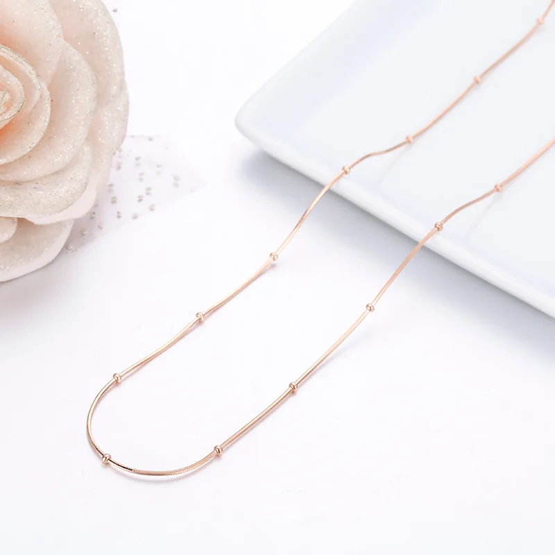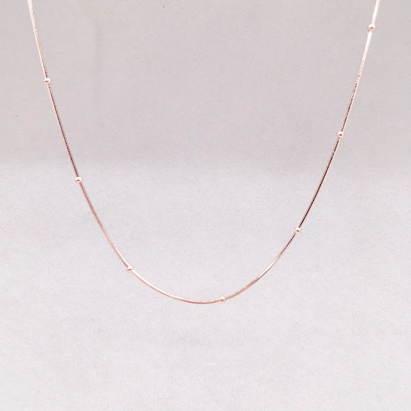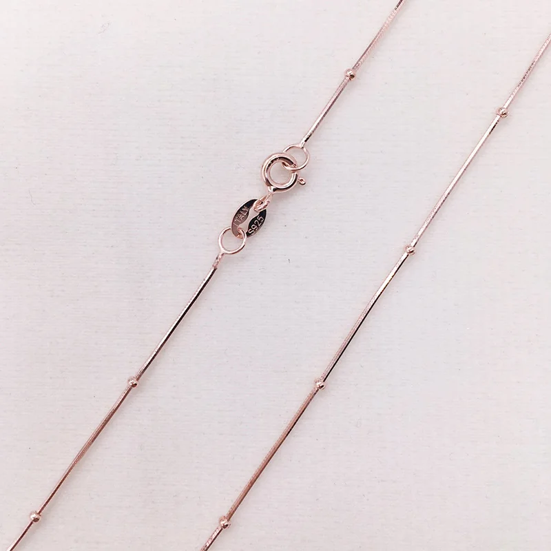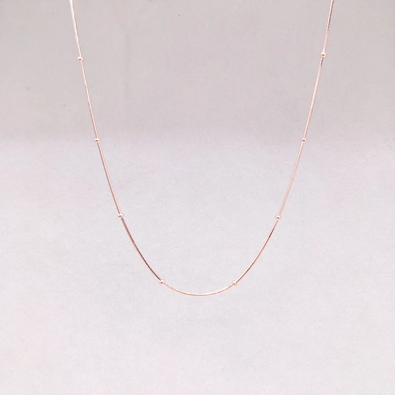 Тонкое ожерелье из стерлингового серебра 925 пробы с бусинами из розового змея золотистого цвета, цепочка для женщин и девочек, детское ювелирное изделие, колье, 35-80 см