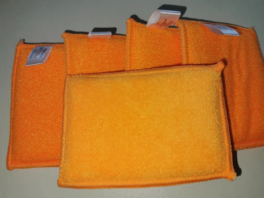 Отличные губки для домашней уборки, для мытья посуды. Хорошо очищают посуду, не царапают. Пришли все оранжевого цвета, красивые. Заказ пришел очень быстро, примерно за 2 недели. Заказ отслеживался. Рекомендую!