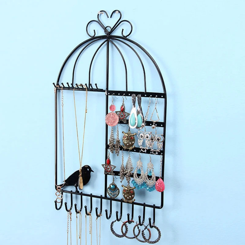Креативная настенная подвесная железная птичья клетка, рамка для ювелирных изделий, серьги, ожерелье, браслет, ювелирная демонстрационная Подставка для ювелирных изделий