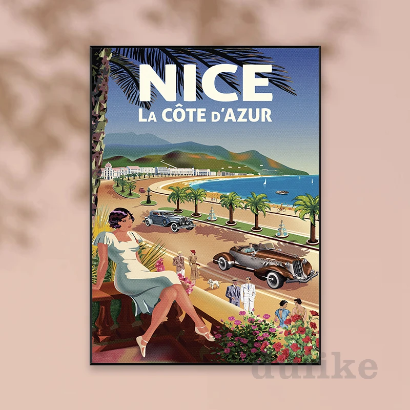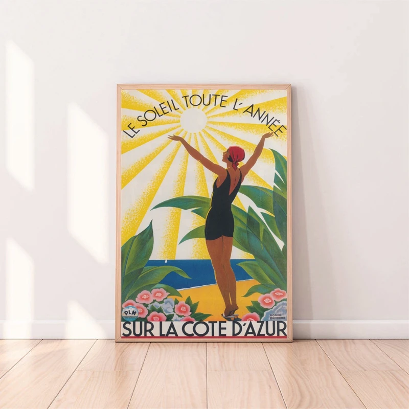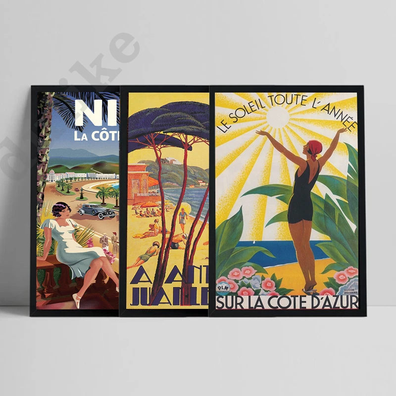 Винтажный дорожный плакат с принтом «Sur La Cote D' Azur», цветная настенная живопись на холсте, французский Ривьера, домашний декор для стен