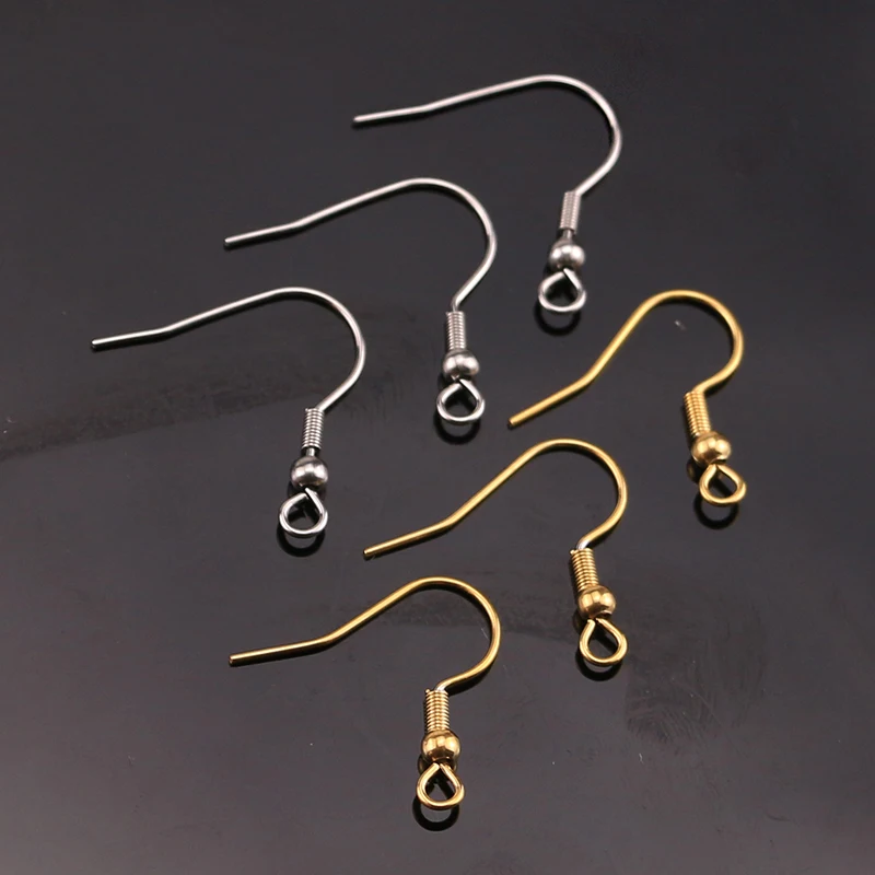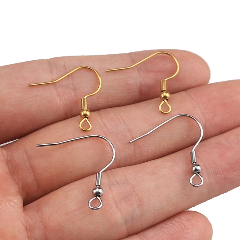 Крючки для сережек из хирургической стали, 50 шт.лот, антиаллергенные, золотистые стальные, аксессуары для сережек, ручная работа