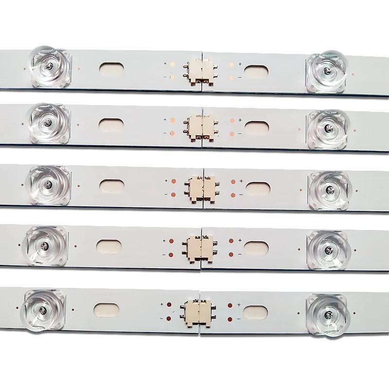 100% Фирменная Новинка! Длина полосок фиксируется, не может быть вырезана. Размеры: 1030 мм Светодиодный Кол-во в коробке: 9 светодиодный s (5 + 4) Напряжение: 0-94 в 1 лот = 40 шт. (20 шт.-570 мм 5 светодиодов + 20 шт.-460 мм 4 светодиода)