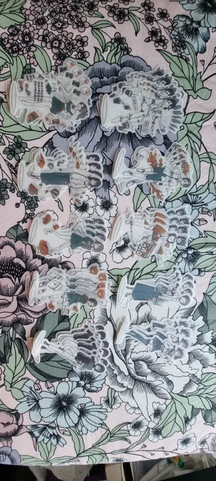 Как в описании. Действительно хорошо продуманный и нравится художественный стиль этих наклеек. Некоторые из них застревают вместе, так что просто убедитесь, что немного отделили их, если вы беспокоитесь об этом. Получил одну наклейку, которая потеряла часть, но так как я получил две дополнительные детали, чем сказал название, я могу просто прикрыть их при использовании, и это не будет так заметно. Кроме того, пришел вовремя и немного быстрее, чем я ожидал. Действительно мило и очаровательно☺②.