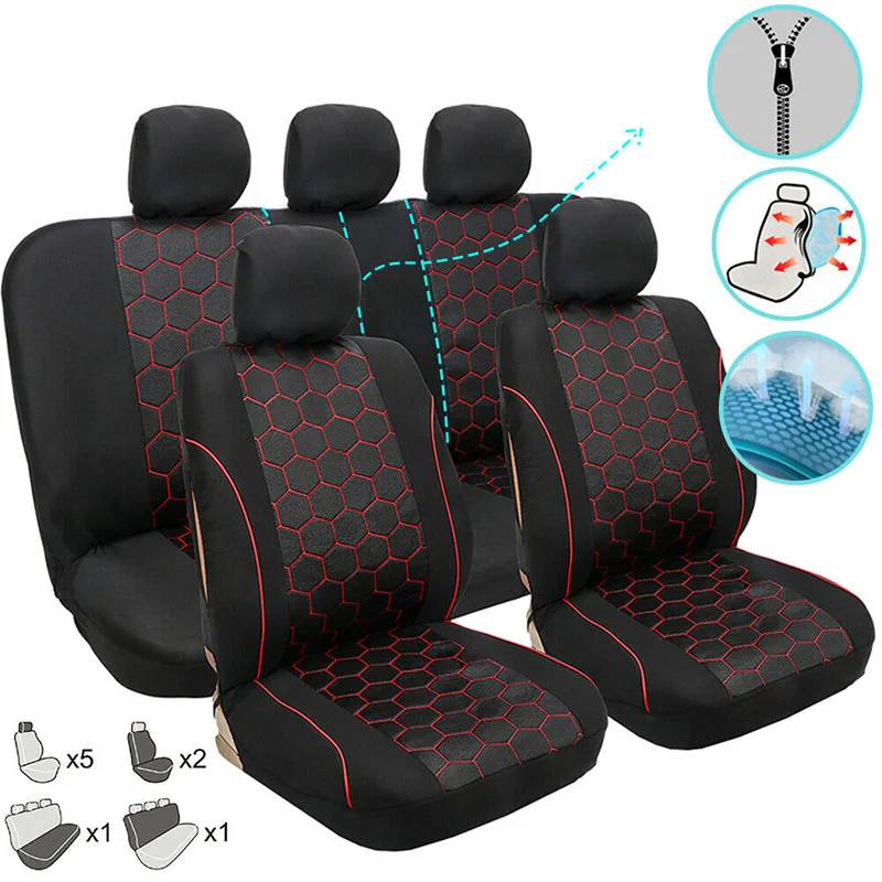 Споры: если у вас есть какие-либо вопросы, пожалуйста, сначала свяжитесь с нами и не оспаривайте, потому что у нас есть возможность помочь вам решить все проблемы. Отзывы поскольку Ваш отзывы в очень важен для развития нашего бизнеса, мы искренне просим вас оставить положительотзывы в (пять звезд) для нас, если вы удовлетворены нашим продуктом и обслуживанием. Пожалуйста, свяжитесь с нами, прежде чем оставлять отрицательный или нейтральный отзыв. Мы сделаем все возможное, чтобы решить ваши проблемы. Потому что наша цель: 100% Удовлетворенность клиентов. Спасибо за понимание! Особенности: 1. Чехлы на задние сиденья спинки имеют 3 молнии на них для размещения левого и правого 40/60 разъема, 40/20/40 разъема и 50/50 разъема. 2. Так же он позволяет сложить подстаканник или подлокотник, расстегнув одну из молний на крышке спинки. 3. Как универсальный чехол на сиденье, он подходит для большинства автомобилей с 5 сиденьями и съемными или выдвижными подголовниками. 4. Изготовлен из высококачественного мягкого полиэтиленового материала, мягкий и удобный, дышащий и без запаха, прочный. 5. Материал из полиэфирного волокна легко чистить и протирать влажной тканью. 6. Защитите стоимость перепродажи вашего автомобиля 7. Защитите хорошее сиденье или замаскируйте старое 8. Защитите ваши автомобильные сидения от проливов, пятен, выцветания, разрывов, грязи, крошек и шерсти домашних животных. 9. Накидки на сиденья автомобиля не препятствуют нормальному использованию функций обогрева и вентиляции автомобильных сидений. 10 накидка на сиденье автомобиля не сковывает использования боковых подушек безопасности и ремней безопасности. 11. Это помогает повысить комфорт сидения. Чехол на сиденье уменьшает вибрацию колес, когда мы едем по дорогам. Посылка входит: 2 x чехол на переднее сиденье 1 чехол для заднего сиденья 1 чехол на заднее сиденье спинки 5 x чехол на подголовник