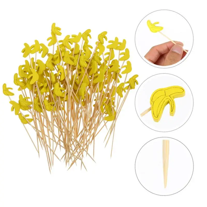 Около 100 шт., деревянные Фруктовые палочки для коктейлей, напитков, зубочистки для свадьбы, дня рождения, детского душа