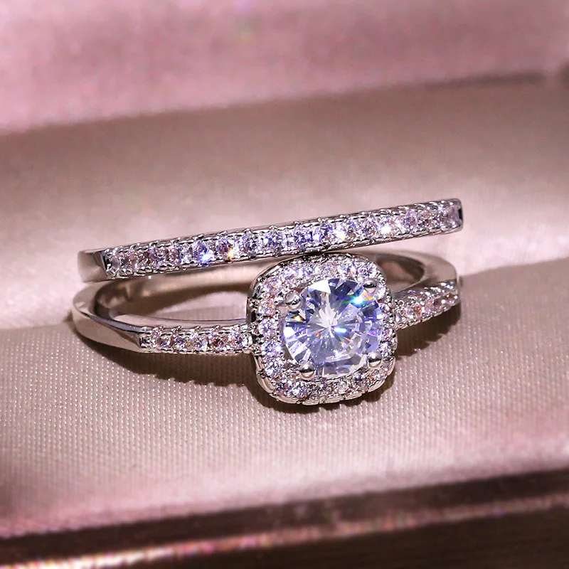 Набор обручальных колец для женщин, посеребренные кольца для невесты
