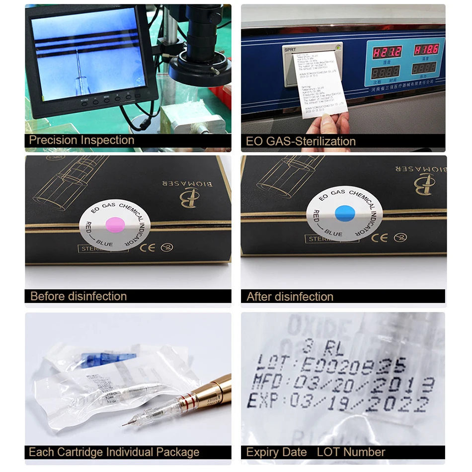 Картридж BIOMASER 1RL из нержавеющей стали с иглами для перманентного макияжа, картридж для затенения тумана, бровей, губ