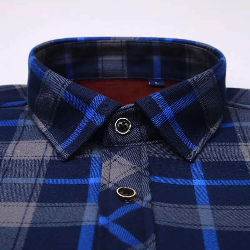 Зимняя клетчатая Повседневная рубашка, Мужская теплая рубашка с дли...