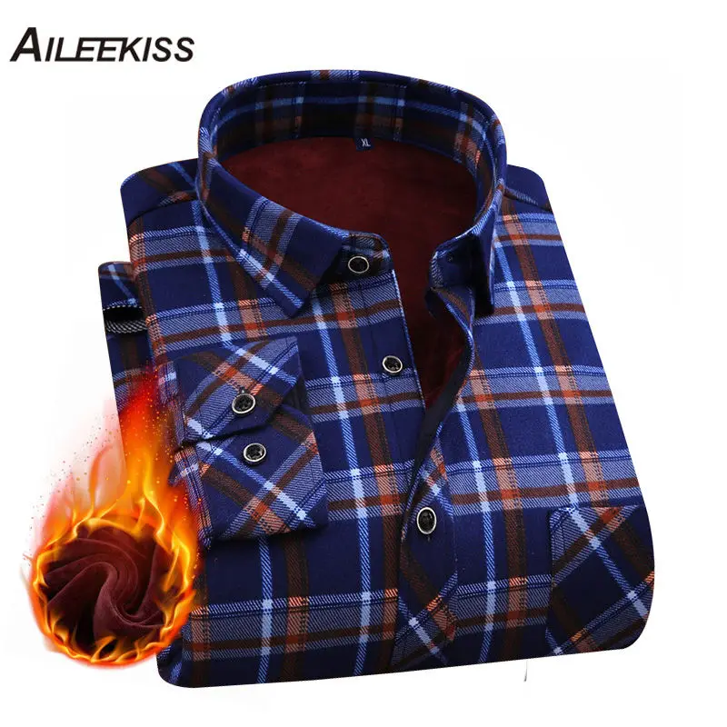 AILEEKISS теплая утепленная мужская рубашка в клетку повседневные зимние осенние мужские рубашки мужская теплая мягкая одежда мужская деловая рубашка XT845