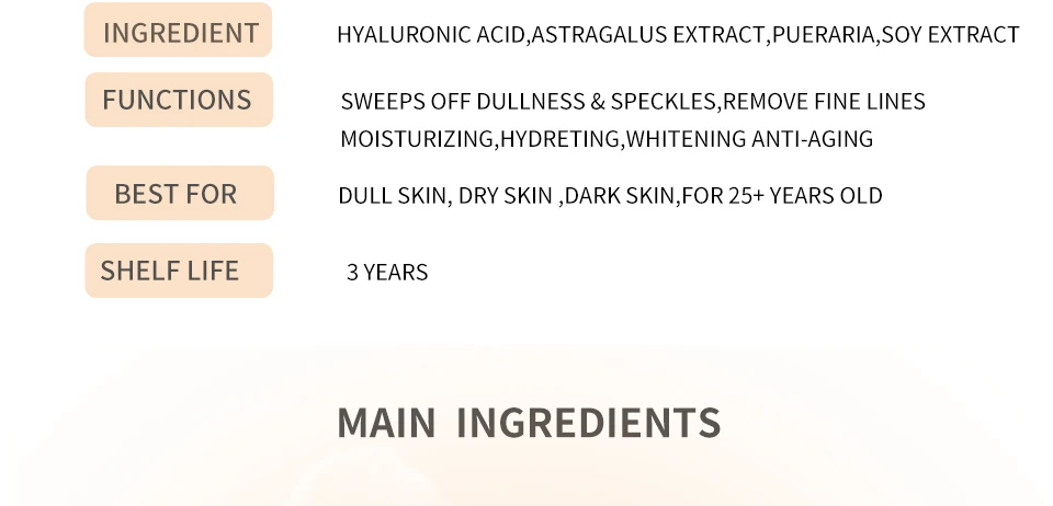 5.Содержит много растительных эссенций, которые могут уменьшить Веснушки, черные точки, отбеливание кожи, осветить тон кожи