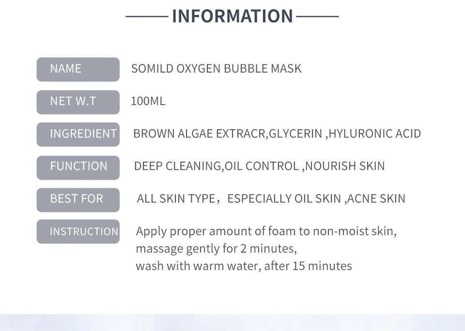 6. Кислородная пузырчатая маска может помочь вашей коже детоксикации, глубоко очистить обязанность, уменьшить поры и оставить кожу гладкой нежной