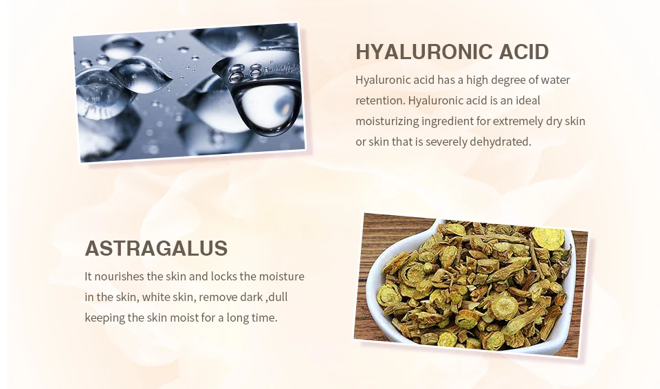 [Ингредиент]: растительная эссенция, гиалуроновая кислота, витамин Е,