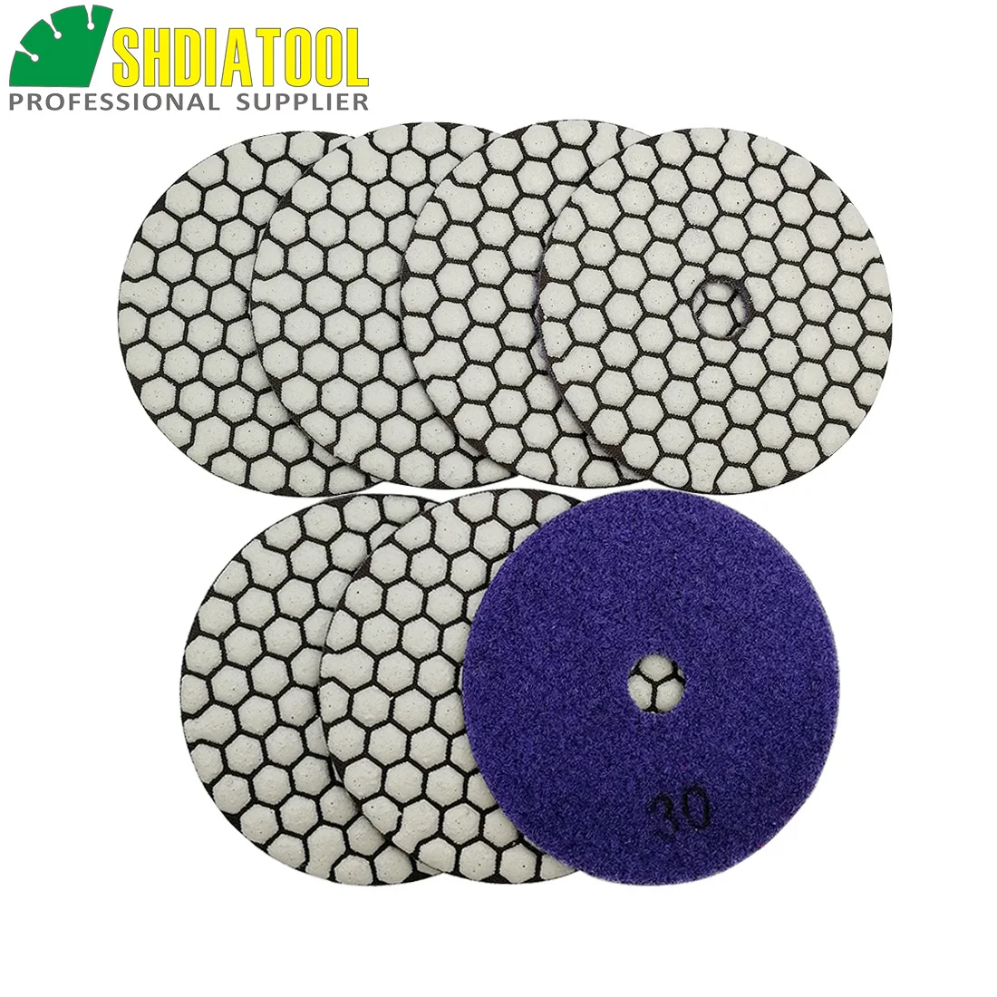 SHDIATOOL 7 шт. Диаметр 4 "100 мм зернистость #30 алмазные сухие полировальные колодки полимерные скрепки гибкий сухой шлифовальный диск для гранита мрамора керамики