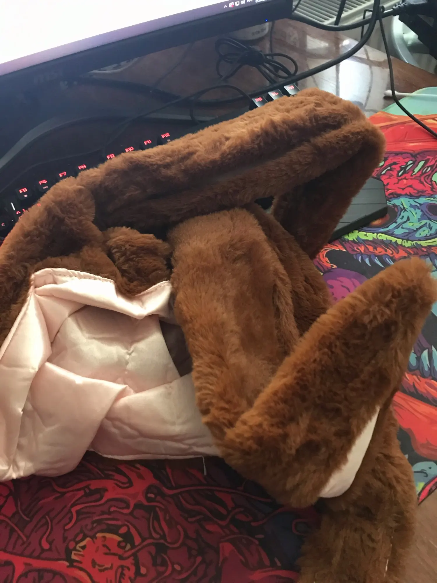 Короче мне очень нравится эта шапка жаль уши не стоят ровно но все же так же я не думала чтоп ридут бежевые уши надо было уточнить у продавца так что этл я протупила пришло меньше чем за месяц в Украину но мне все равно очень нравится (๑•ᴗ•๑)♡