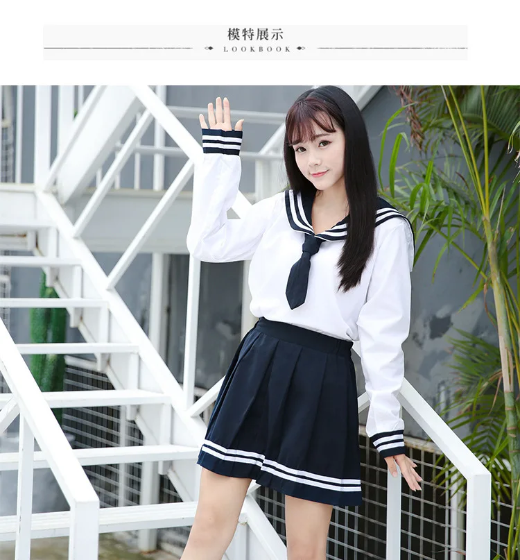 2 шт., Высококачественная форма JK для девочек, японские корейские Топы + юбка + галстук, школьная одежда, униформа, Школьный костюм моряка черного и белого цвета C30153AD