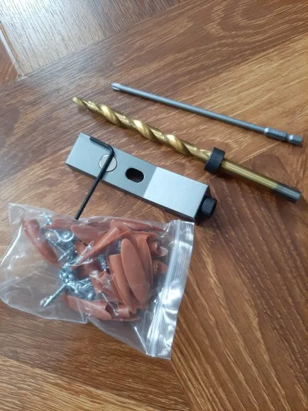 кондуктор полностью соответствует описанию: качество изготовления и покрытия хорошее, линейка нанесена краской(не лазером), вес ощутимый, верхний магнит довольно мощный. комплектное сверло входит в отверстие без люфтов. Отличная альтернатива Kreg за 1/2 стоимости и из металла. Доехал за 1,5 недели в Мск.