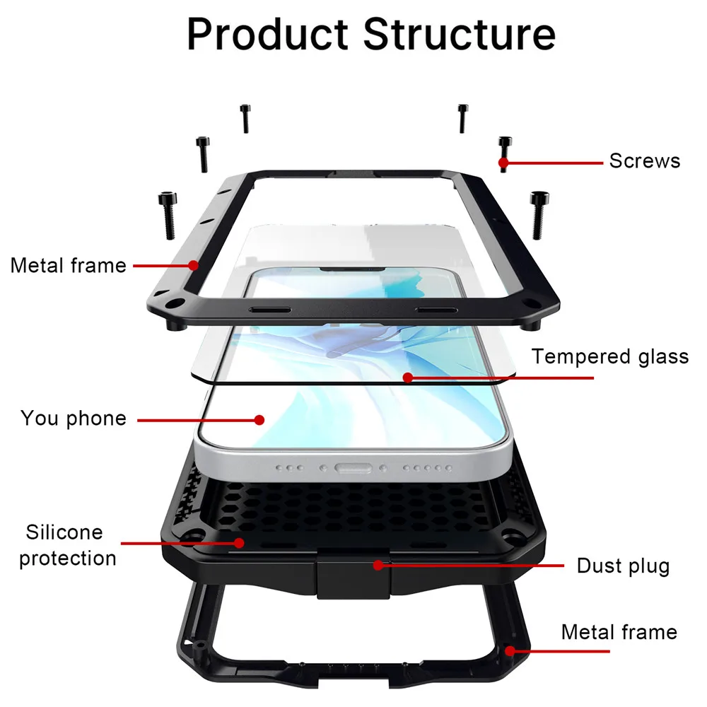 Сверхмощный металлический чехол для телефона с полной защитой 360 г...