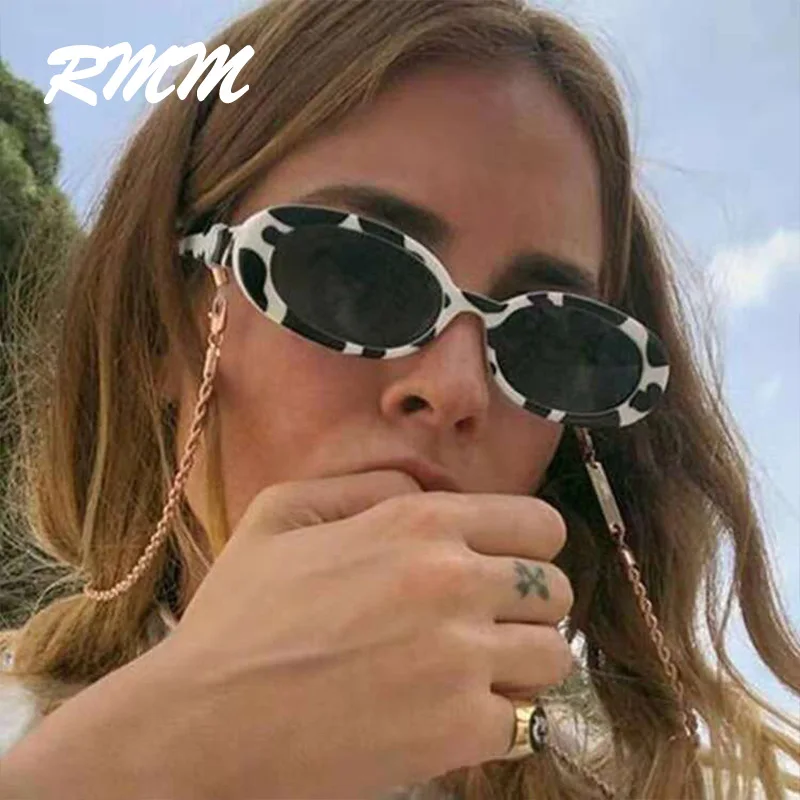 Солнцезащитные очки в маленькой оправе uisex в стиле ретро, Овальные, коровьей расцветки, в европейском стиле
