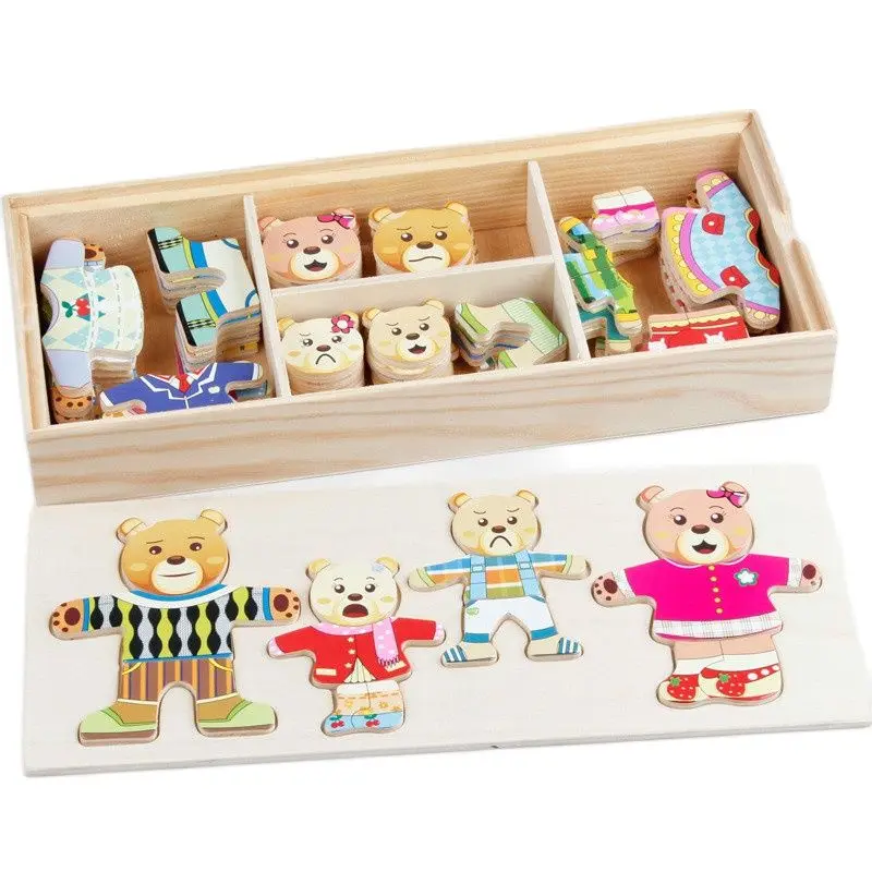 Деревянная игрушка Монтессори, Мультяшные животные, меняющие одежду...