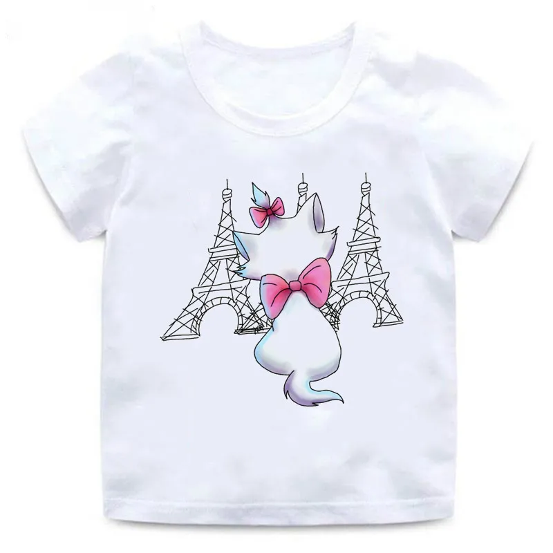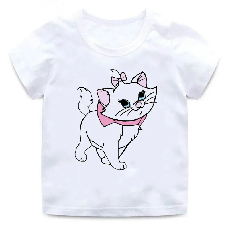 Забавные детские футболки 2-12 мультяшных животных Мари, кот, милые топы для мальчиков и девочек, футболки, детская повседневная одежда для малышей BAL107