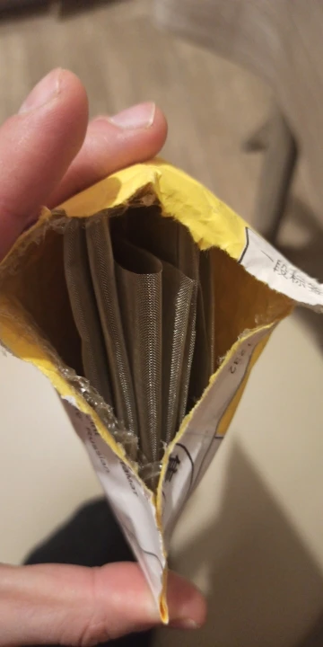 Отвратительно упаковано , продавец сложил вчетверо 10х10 , хотя бы влезла целиком в конверт. Сделал из неё паровую сетку на носик электрочайника, прежняя (оригинальная) оторвалась и улетела в канализацию, и как запчасть не купить.