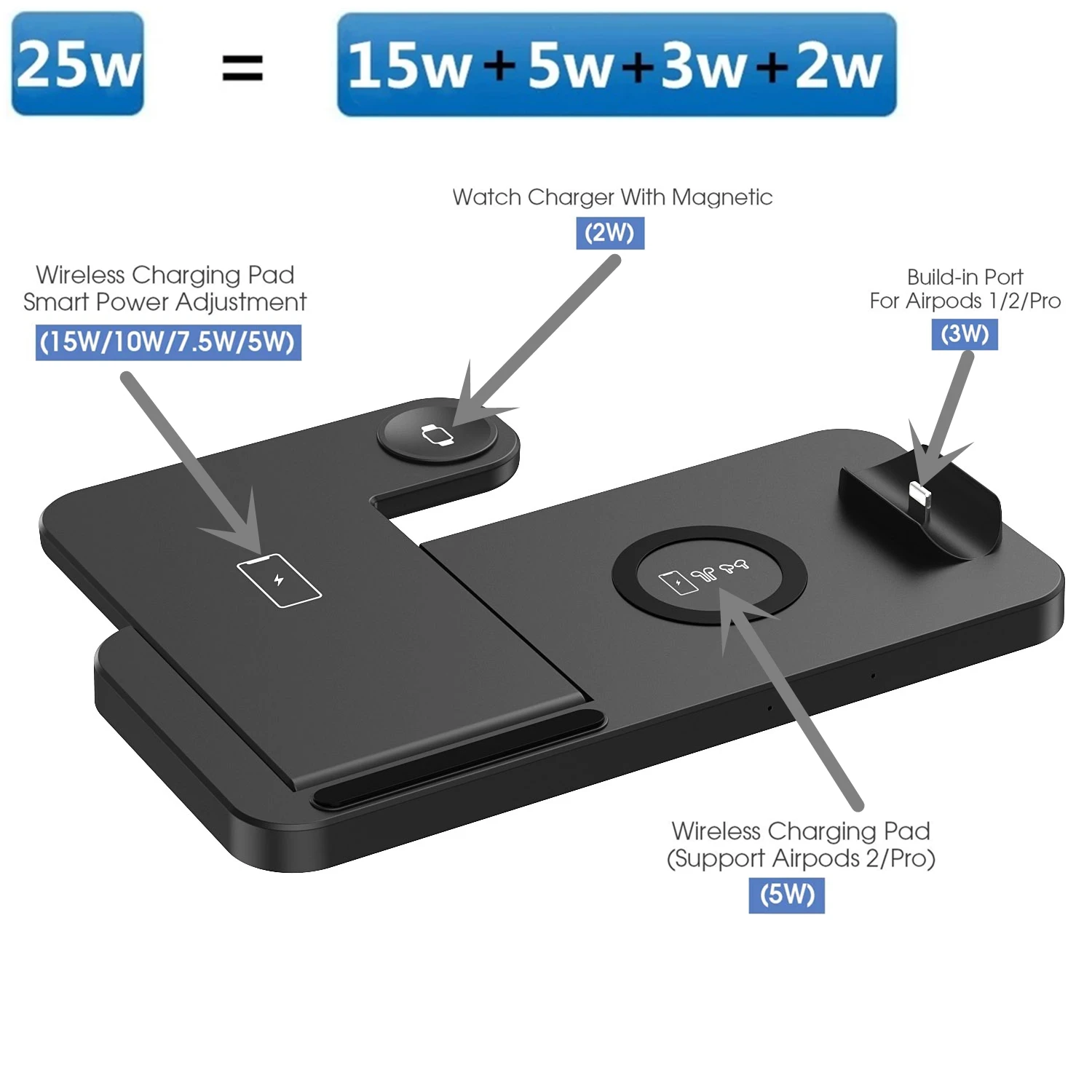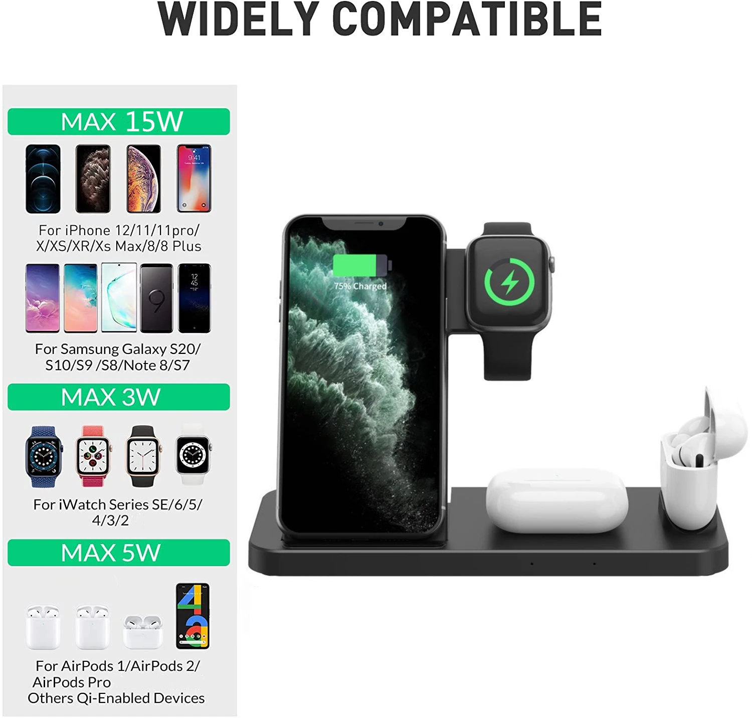 Беспроводное зарядное устройство Qi 4 в 1, 15 Вт, станция для быстрой зарядки для Apple Watch 7 6 5 4 iPhone 13 12 11 XS MAX XR X 8 Airpods Pro, подставка