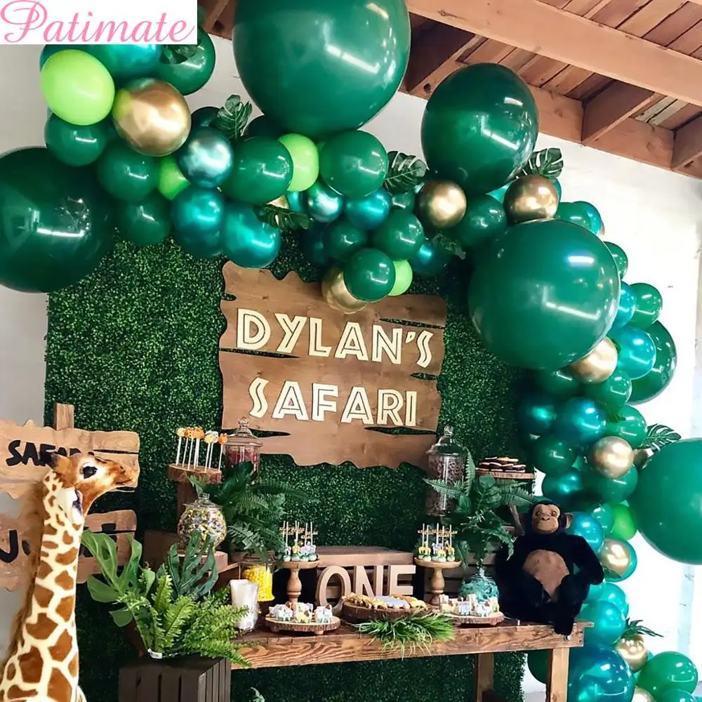 Латексные зеленые шары в виде пальмовых листьев, фольгированные воздушные шары в стиле сафари, тропические шары для вечеринки на один год, украшение для дня рождения, для детей