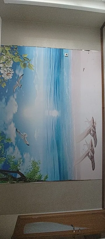 Доставка заняла около месяца. Упаковано добротно. Картинка соответствует выбранному. Но у продавца она немного сочнее. В целом неплохо. Материал довольно прочный , смотрится интересно. Не понравилось, что расчет, который был сделан продавцом, однозначно неправильный. Часть картинки по высоте пришлось резать. Не вижу смысла добавлять 0.5 см, иначе не вписаться в свои размеры. За это снимаю 2 заезды. У меня была возможность не резать излишек по широте, а у кого-то этого не будет. В остальном могу рекомендовать и обои и продавца! Благодарю магазин и желаю исправить все огрехи с размерами!