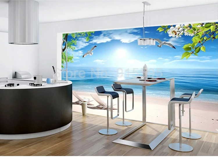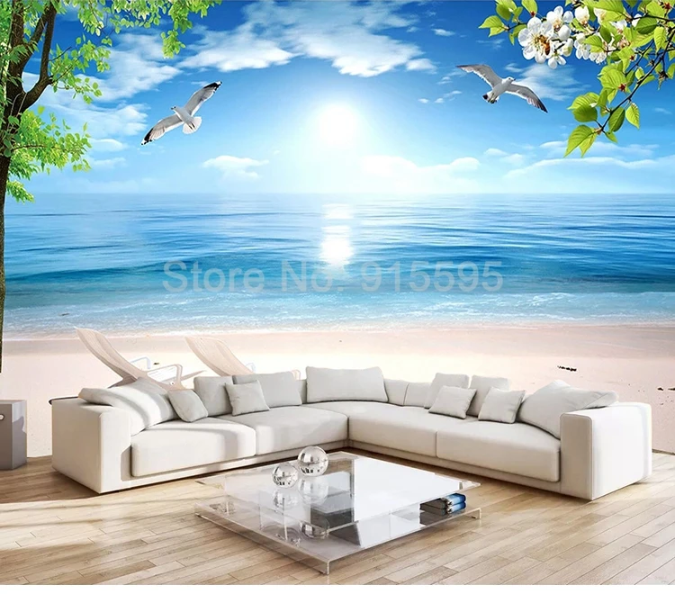 Пользовательские 3D фотообои синий пляж природный пейзаж Большая фреска Ресторан гостиная водонепроницаемые Холст обои живопись