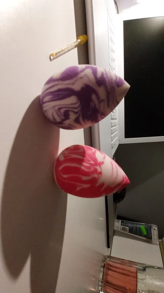 Хорошие спонжики за свои деньги. На ощупь приятные. От воды увеличиваются в размере. Первое фото до воды, второе после. Не такие мягкие как спонжики манли про (если вдруг кто ищет замену им), но вполне себе хорошие. Сиреневый спонжик мягче, чем мраморный