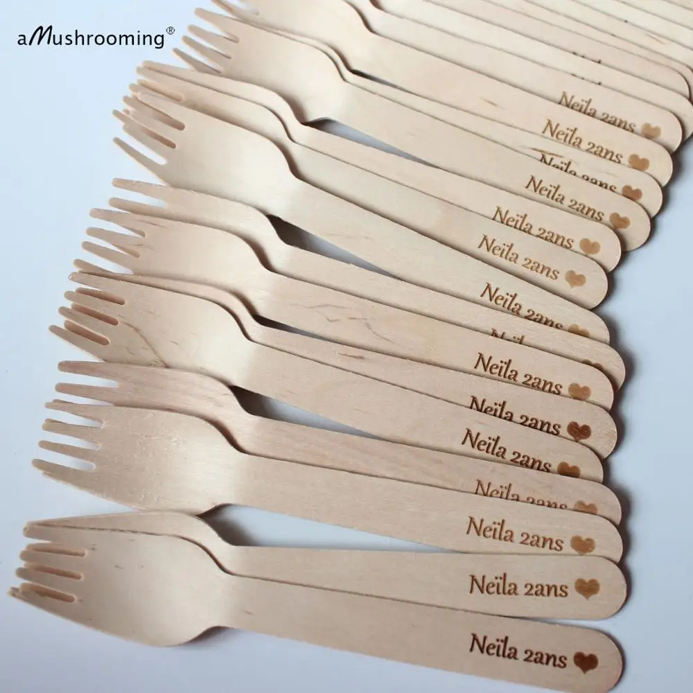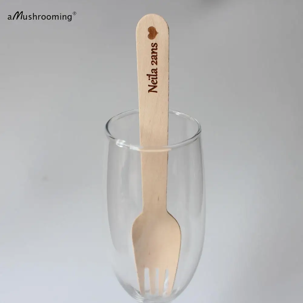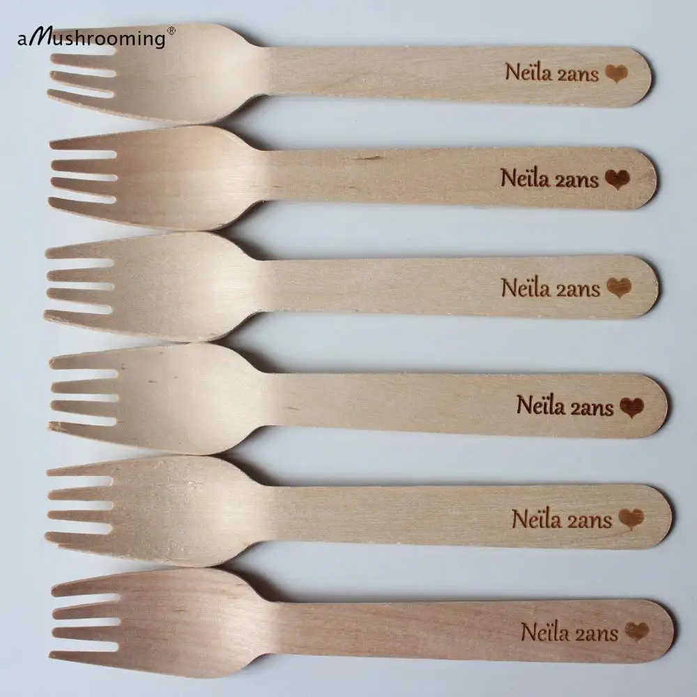 X25 пользовательские день рождения посуда деревянные вилки Выпускной вечерние принадлежности буфет Пикник Кемпинг барбекю Вилки Десертные Вилки для торта