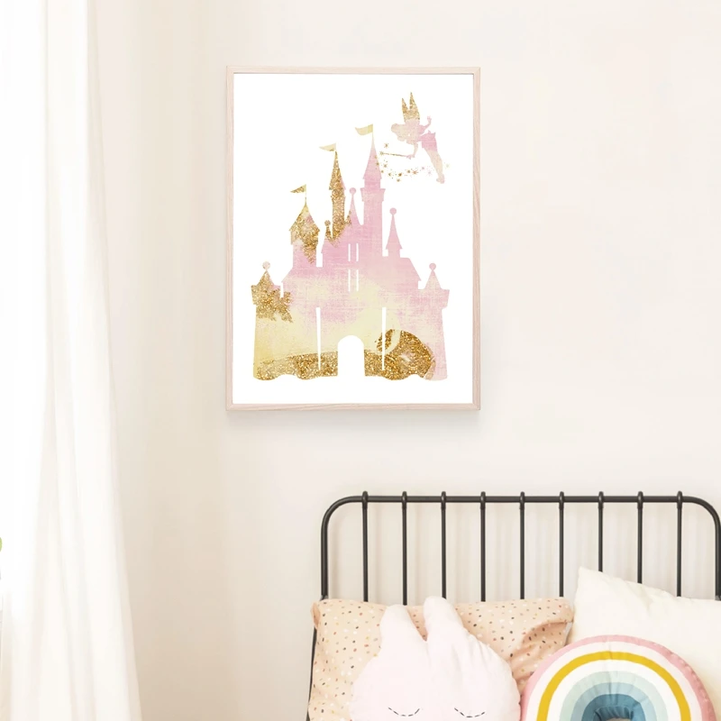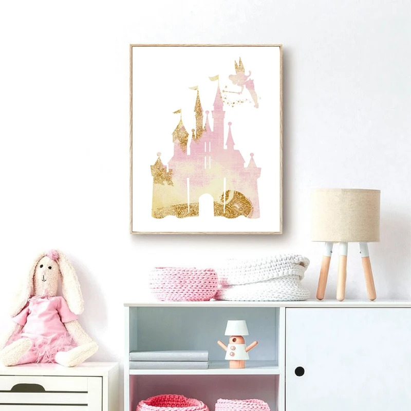 Принцесса замок, феи Tale принт, розовая Акварельная живопись на холсте, картина, скандинавский постер, подарок для дочери, декор для детской стены