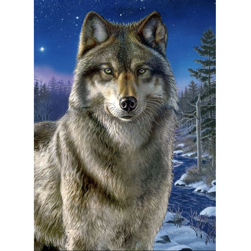 5D DIY Алмазная картина волк в снежном лесу полный квадраткруглая Алмазная вышивка крестиком Стразы Мозаика Декор Искусство подарок