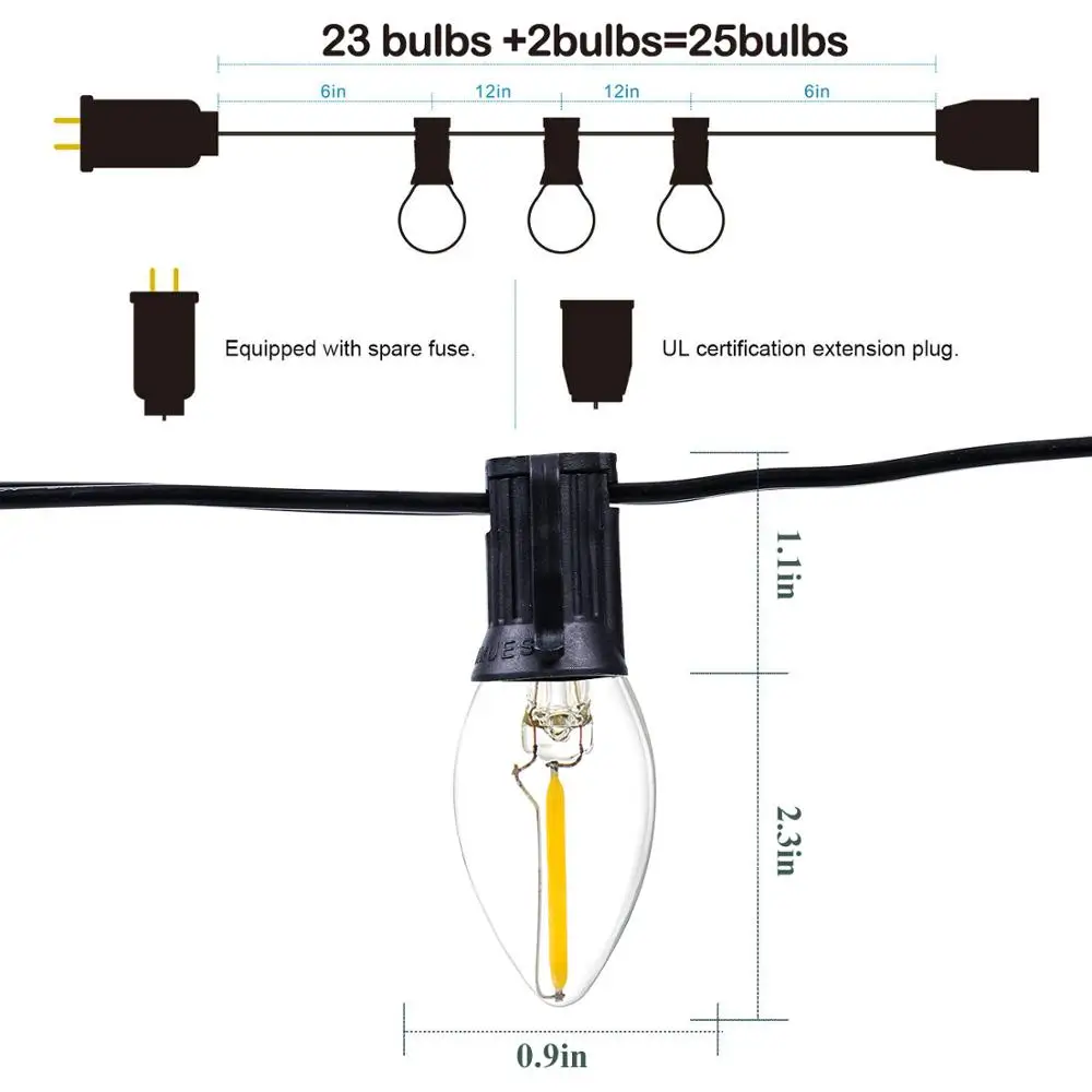 C7 светодиодный строка светильник s 26Ft 25 шт. Винтаж Светодиодный лампа 0,5 W 2700K IP45 Водонепроницаемый крытый и открытый светильник строка для дворе вечерние крыльца
