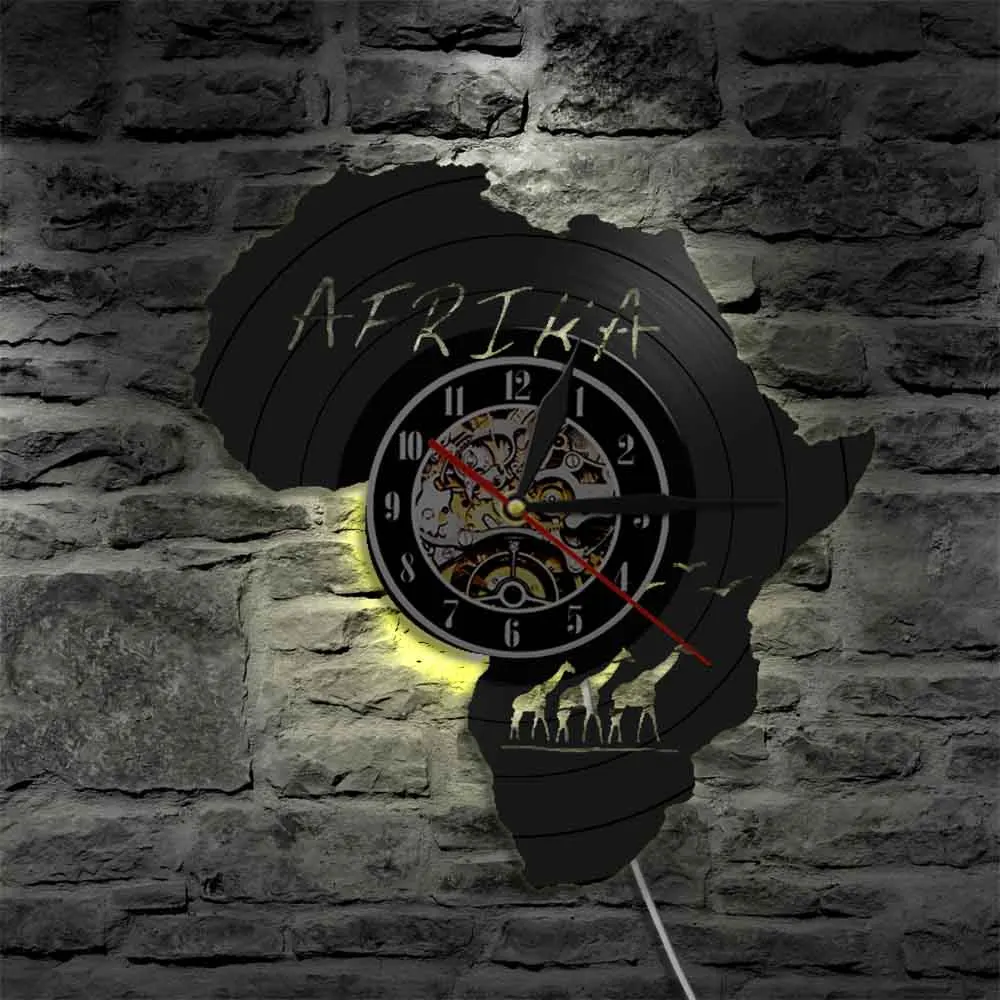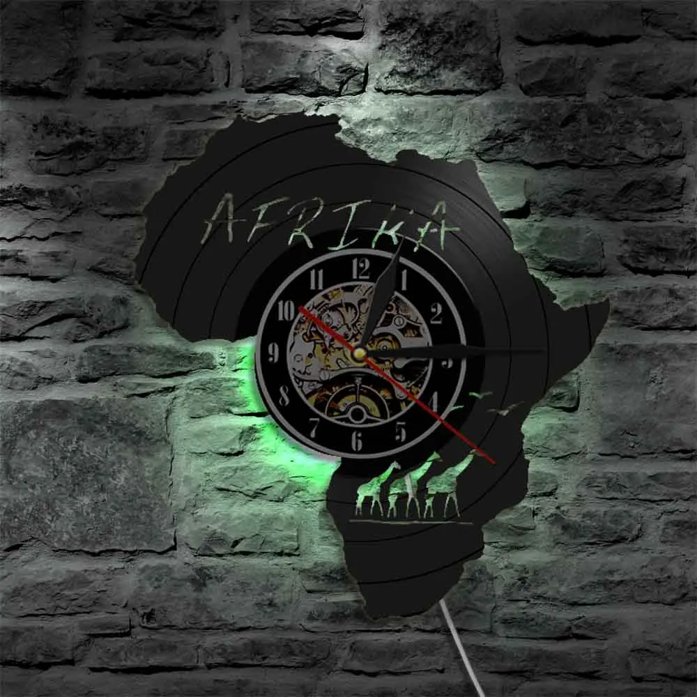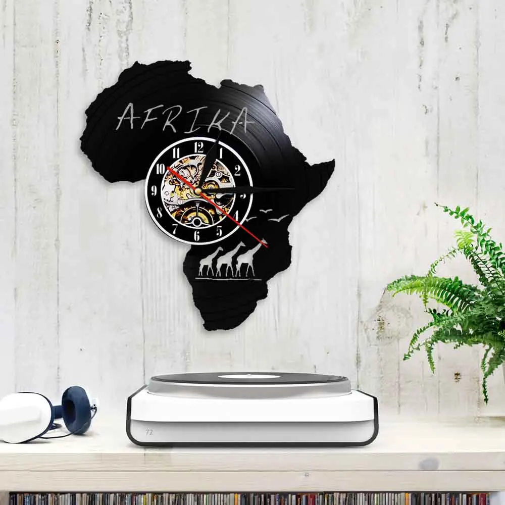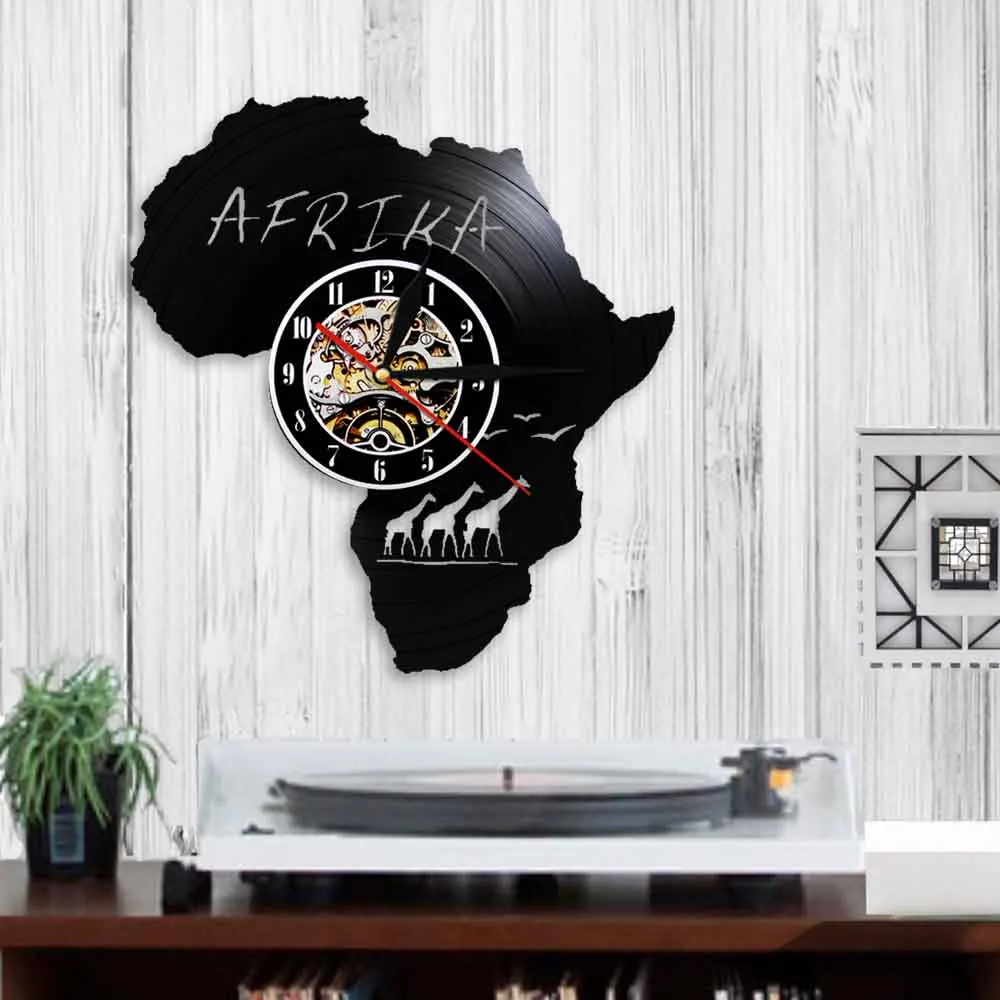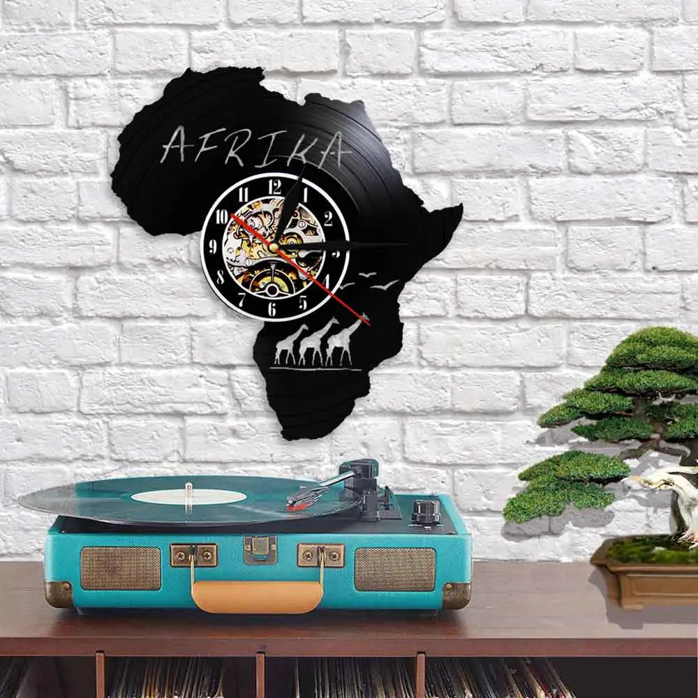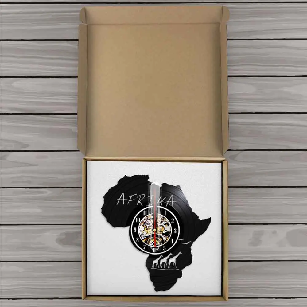 Виниловые настенные часы, украшение на стену в виде африканских животных, дикой природы, жирафа, для детской комнаты, виниловая запись, уникальный подарок