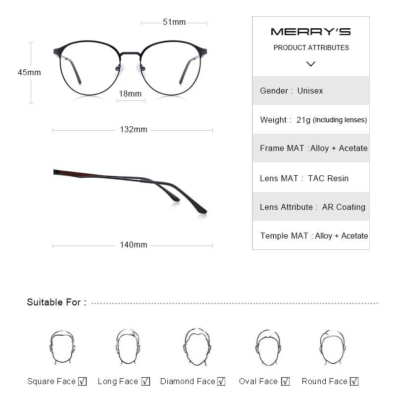 MERRYS дизайн унисекс очки по рецепту Близорукость очки оправа для ...