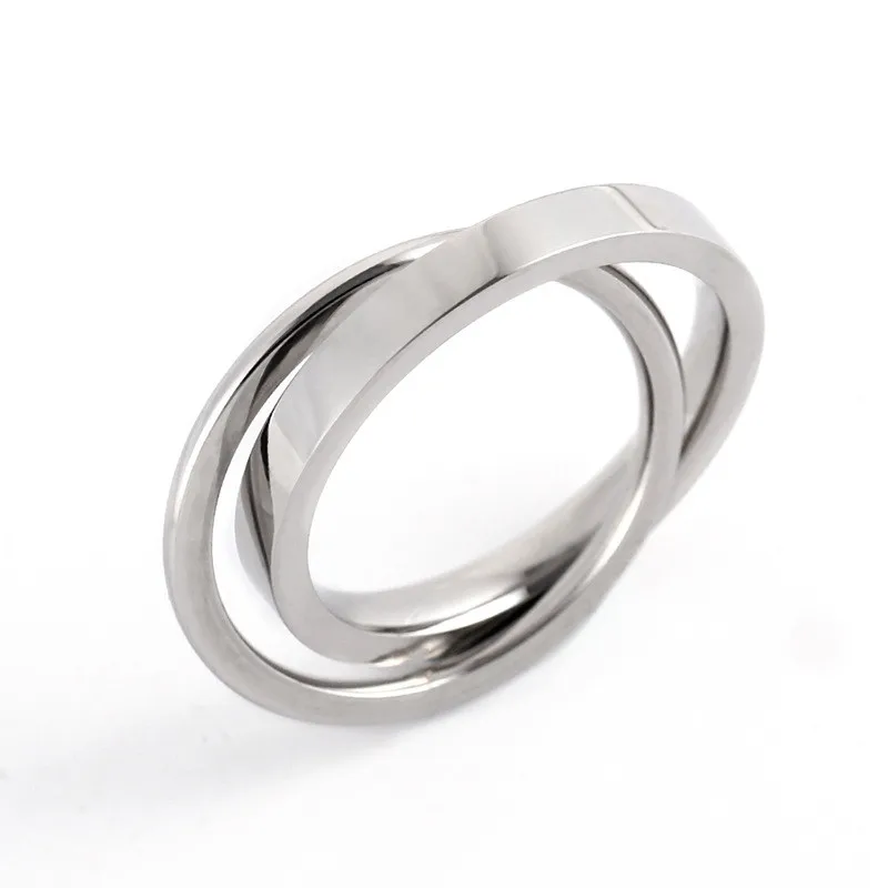 Кольцо обручальное с двумя кольцами для мужчин и женщин, уникальное ювелирное изделие из стали под розовое золото, бижутерия для пар, размеры 5-9