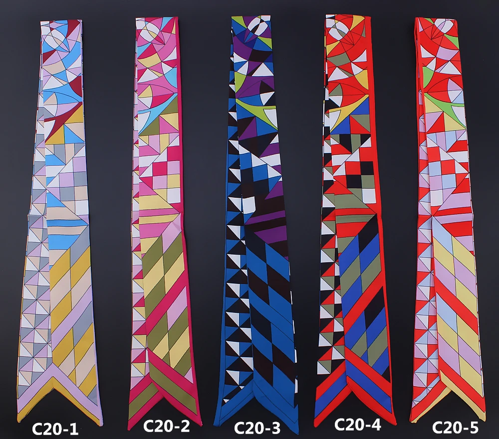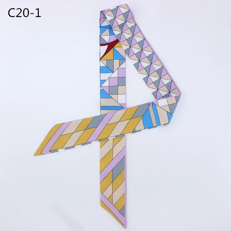 Новинка 2019, шарф, маленький шарф в клетку с геометрическим принтом, женский шелковый шарф, модная брендовая сумка с ручками, длинные женские шарфы с ленточным ремешком